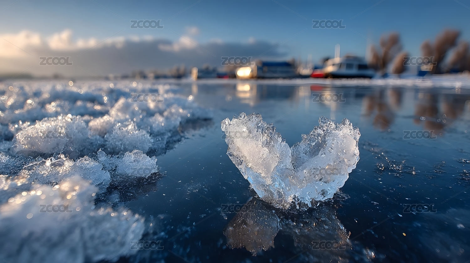 北戴河秦皇岛蔚蓝海岸的冬季冻海日落