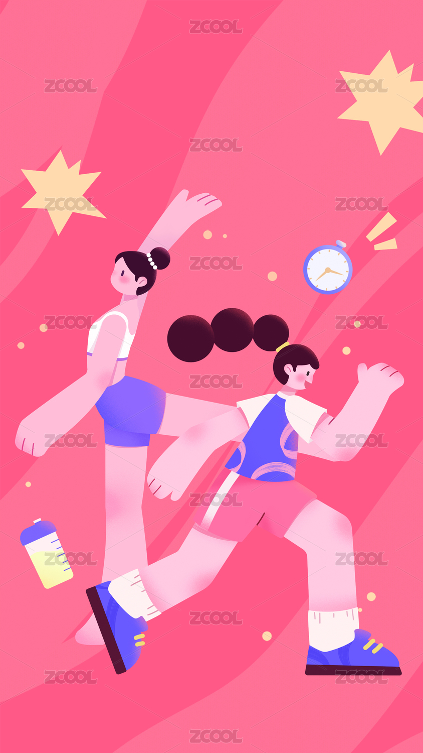 夏天人物锻炼身体运动健身打羽毛球比赛插画