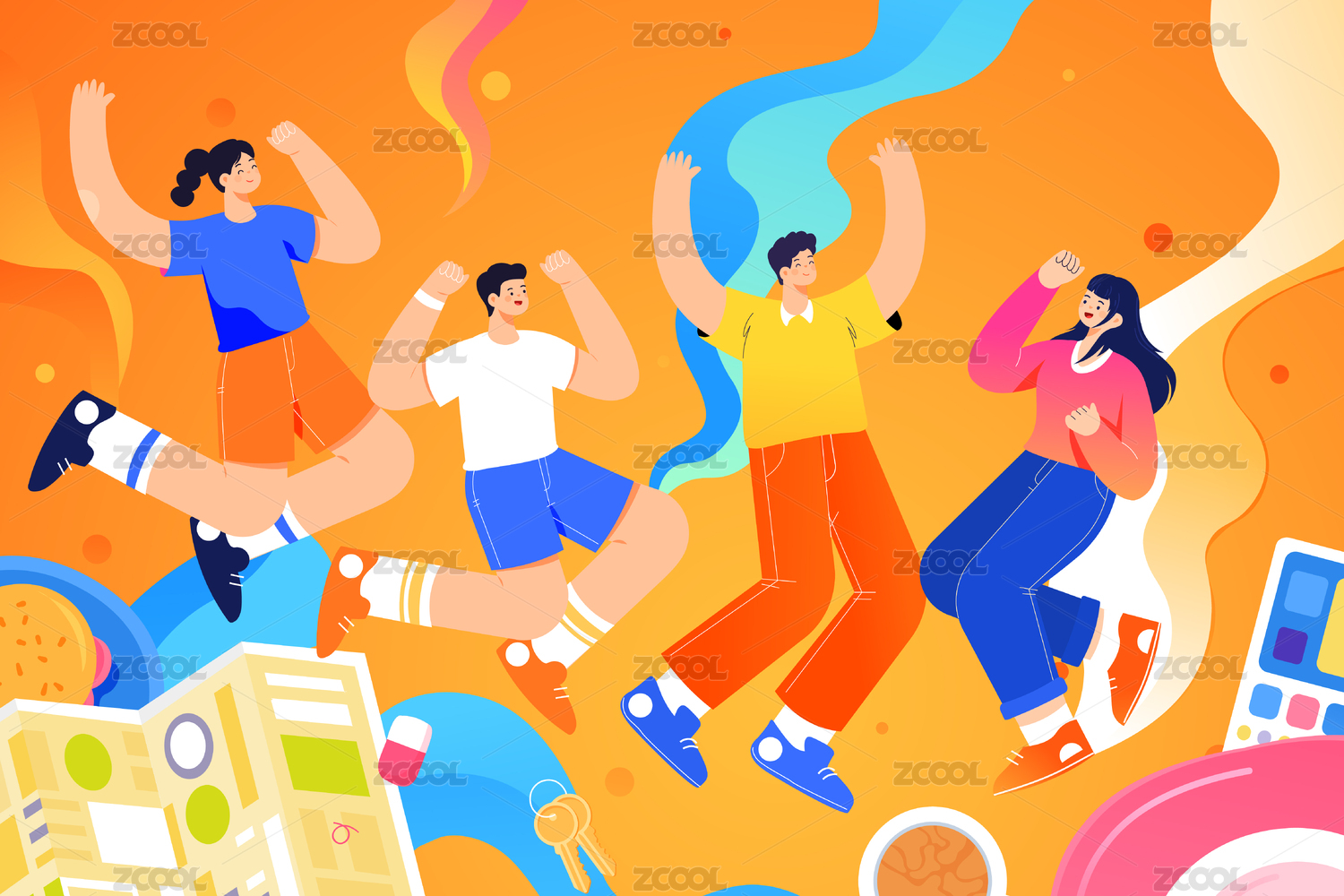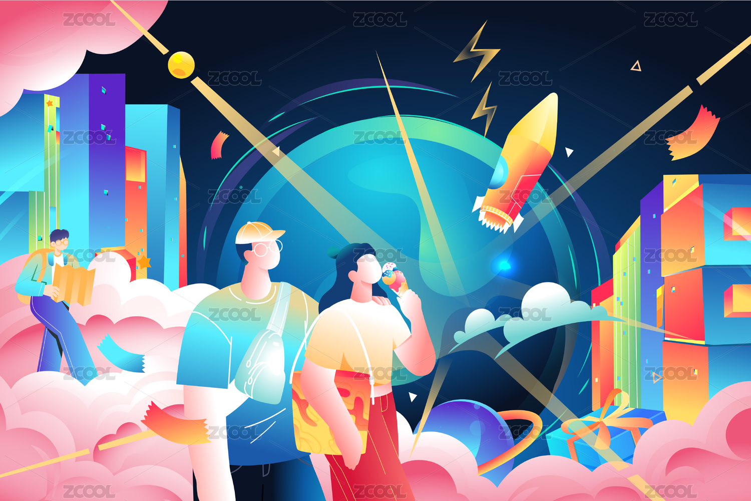 矢量,卡通,渐变,扁平,活动,插画,插图,风景,旅行,节日