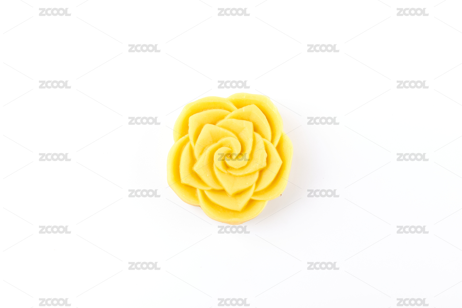 蓝色粉刷板上的一个刚刚制作完成的冰皮月饼
