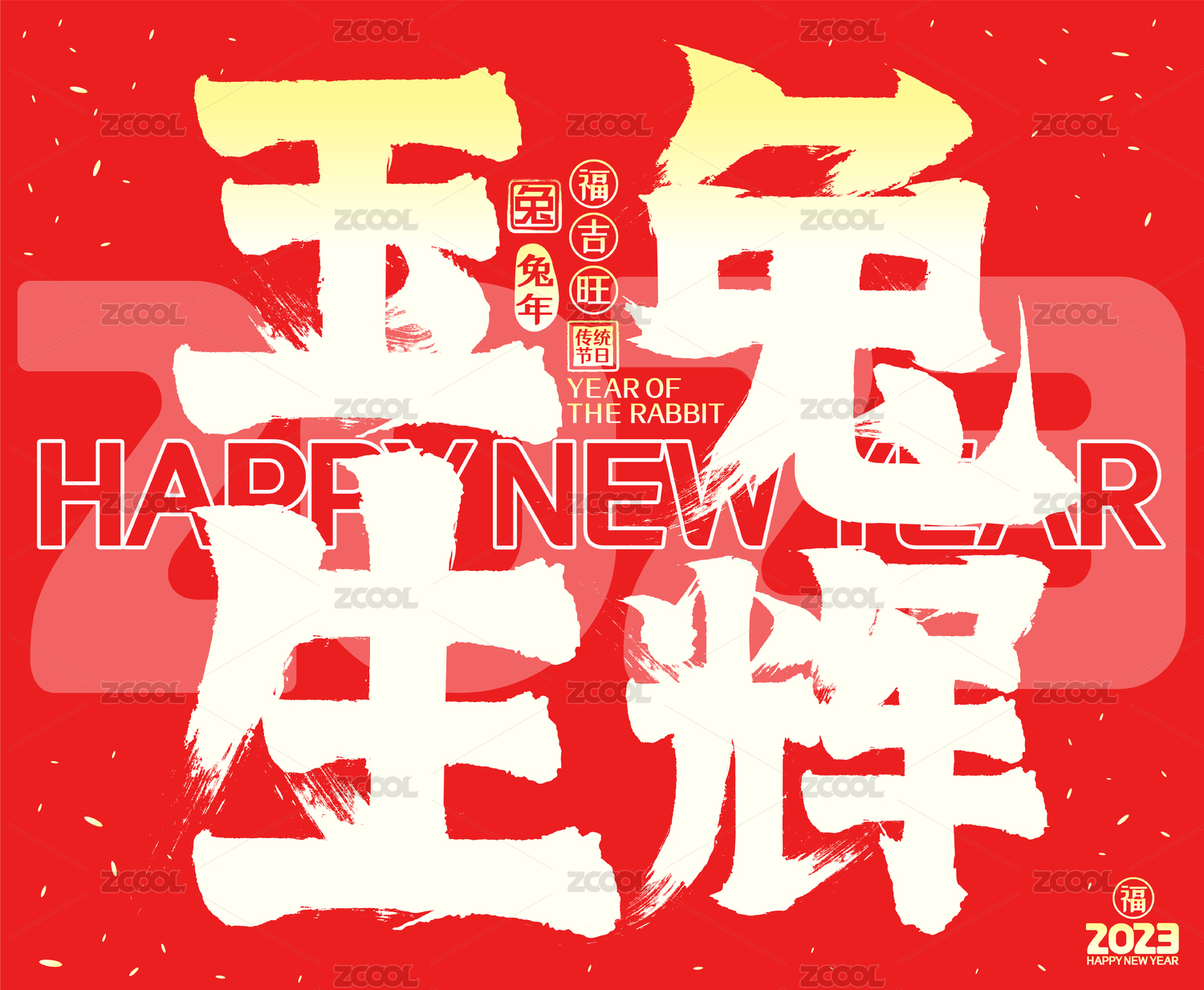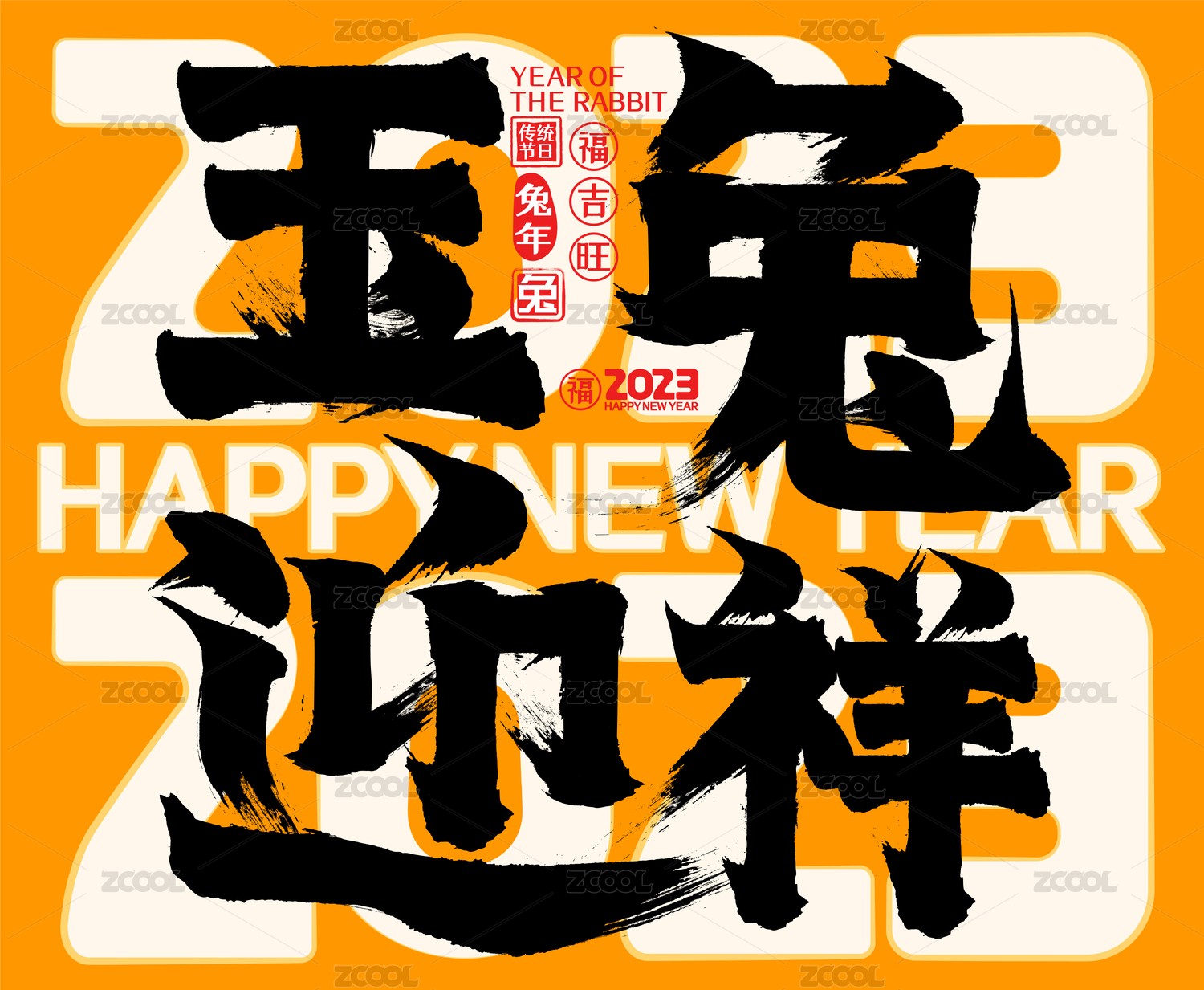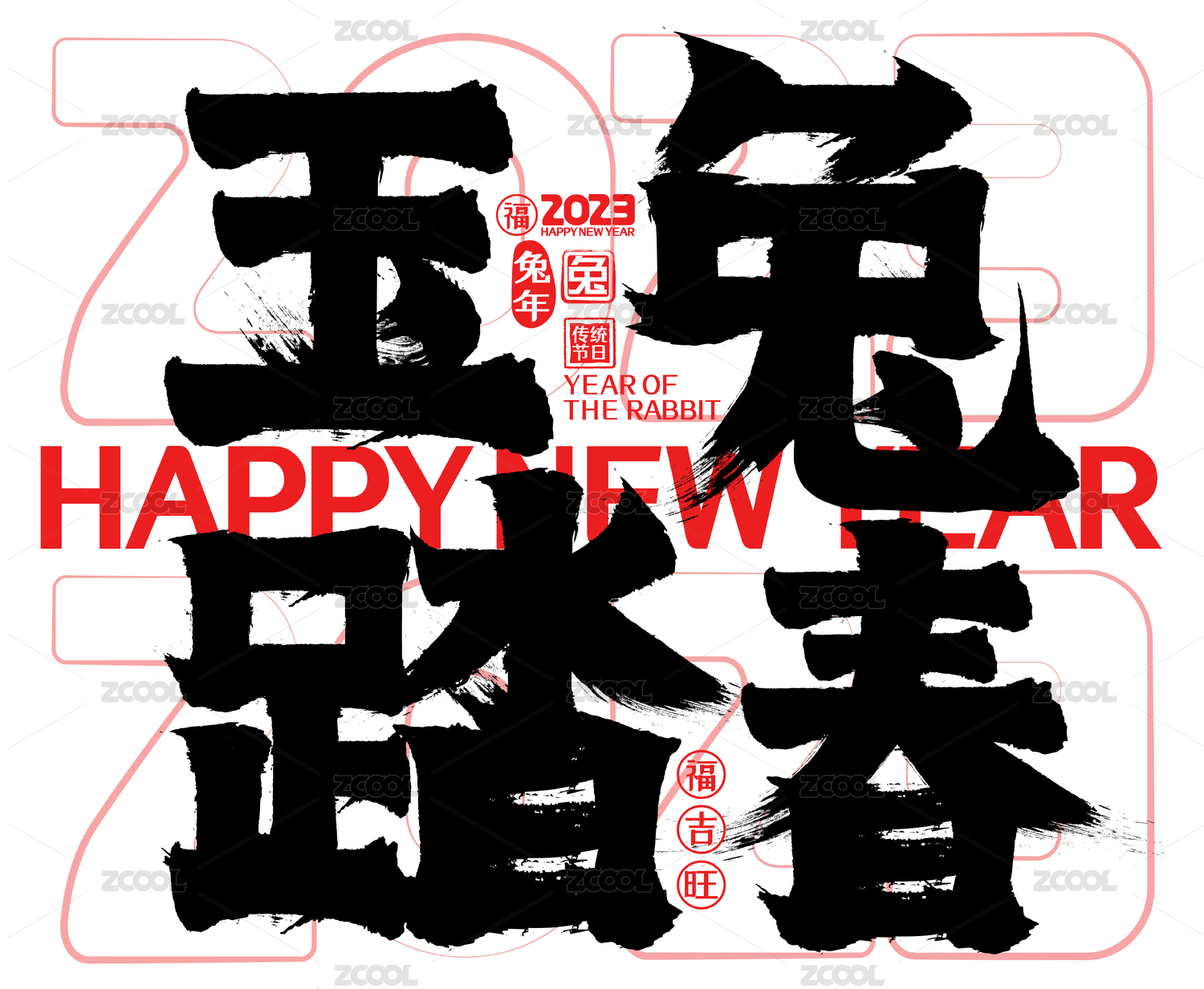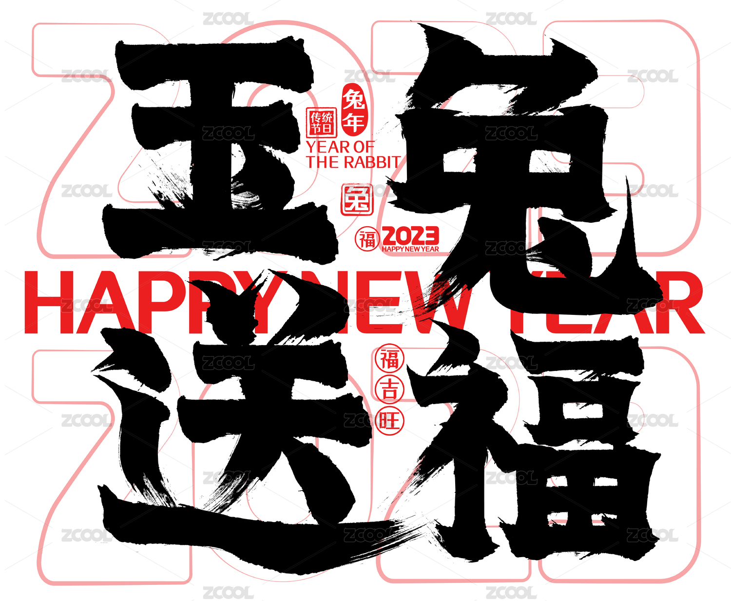 2023玉兔迎祥喜庆中国红兔年春节毛笔字