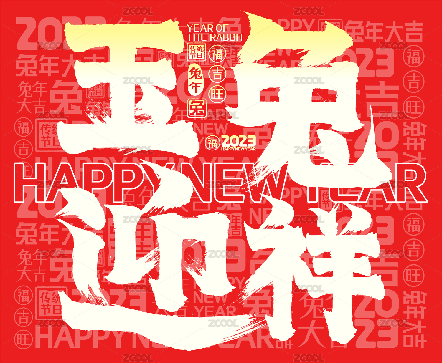 喜庆发光2023玉兔迎祥兔年春节毛笔字