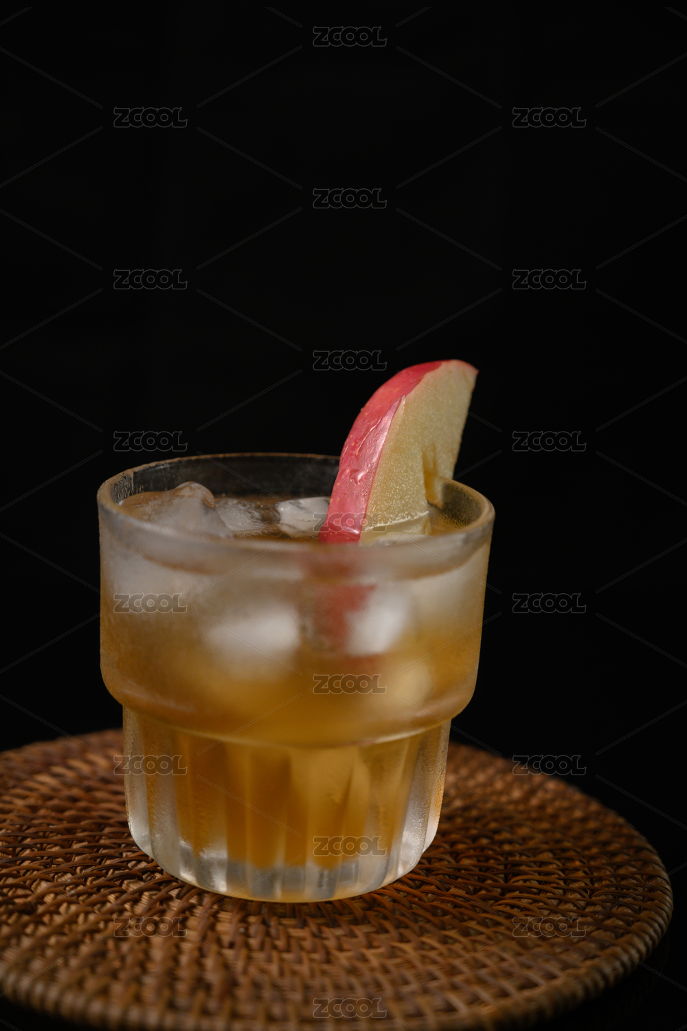 桌面上的杯子里的甘甜可口的冰苹果花茶