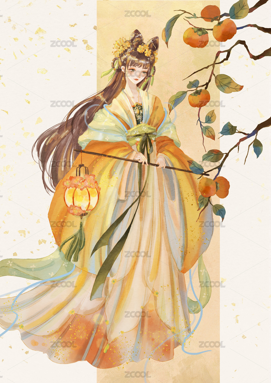 敦煌古风美女国潮汉服浓墨重彩复古华丽插画