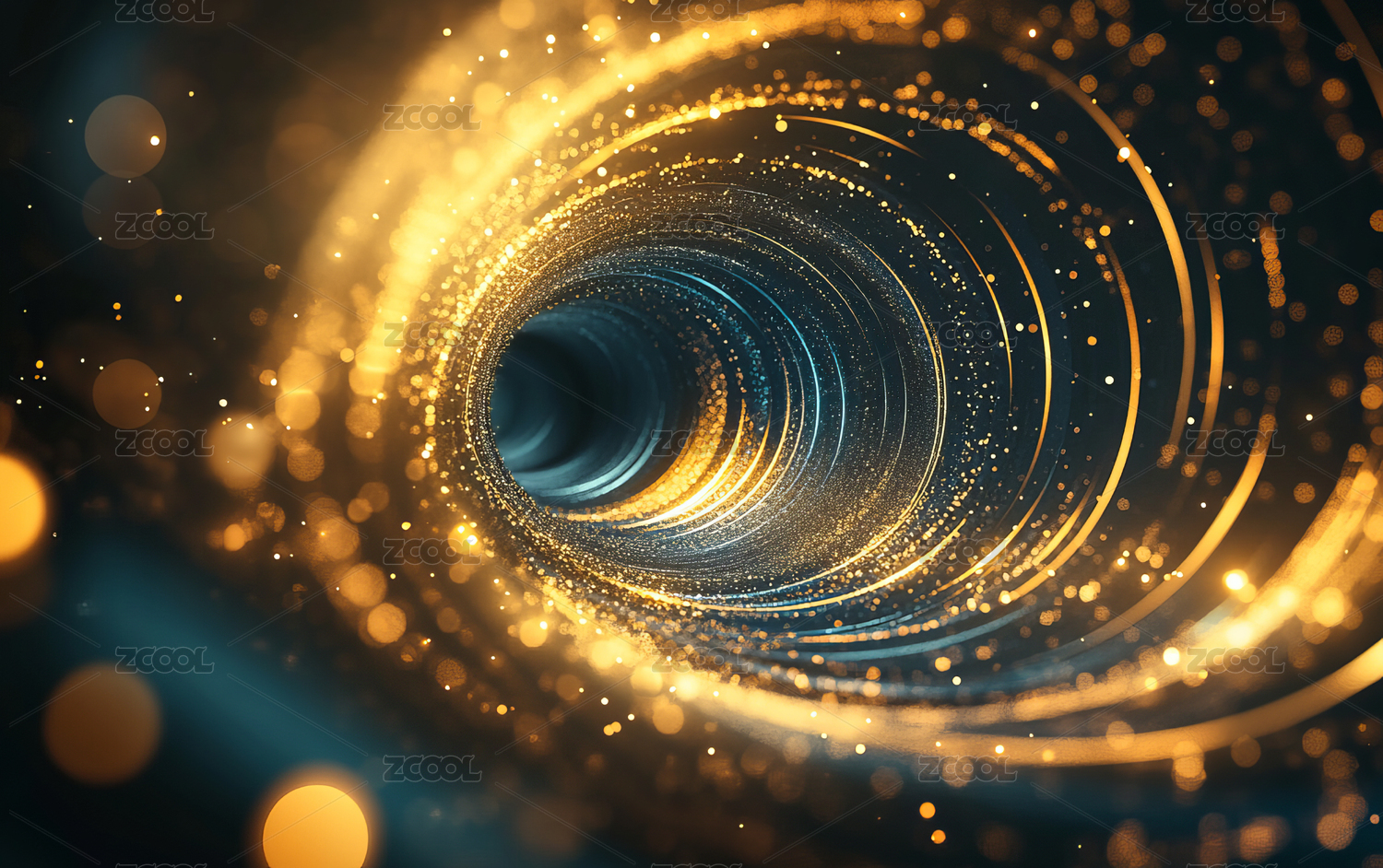 黑色背景下的金色粒子流动的漩涡抽象背景图