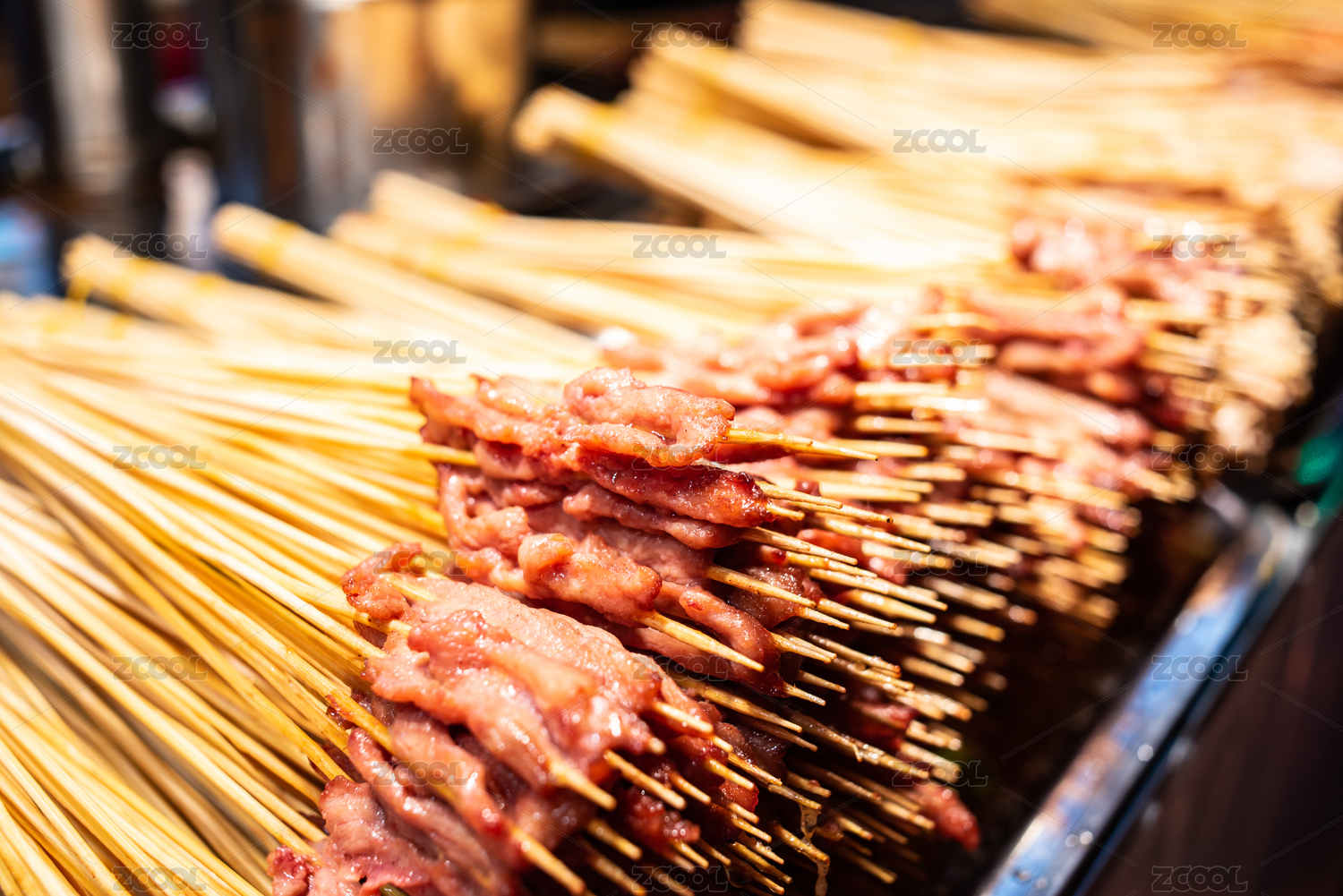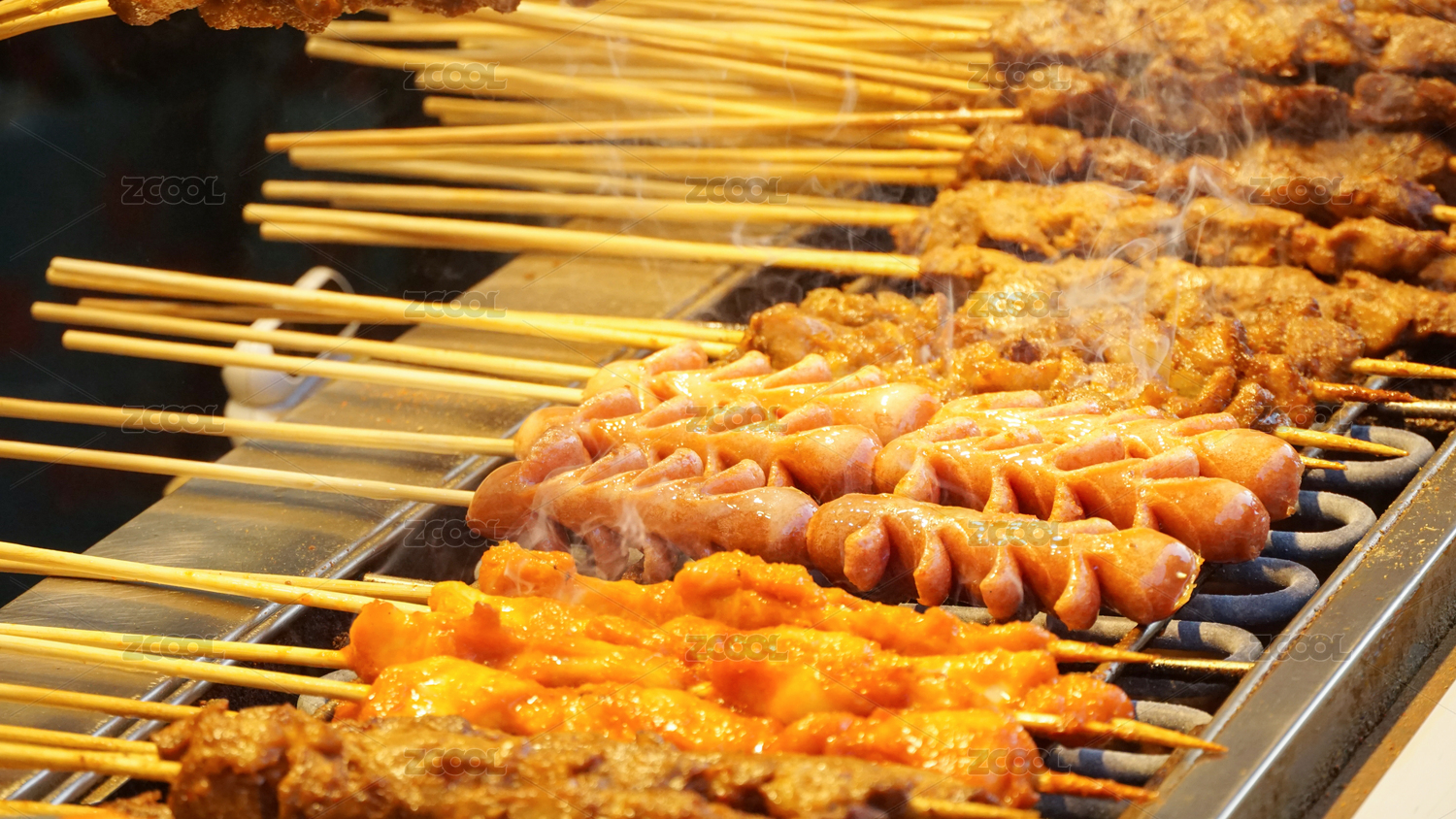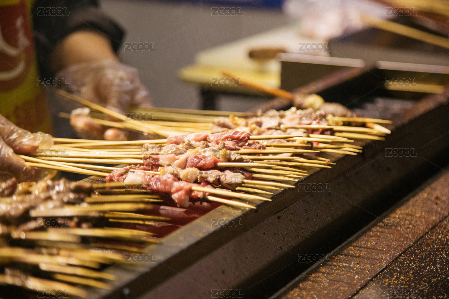 正在烧烤炉上烤制的新疆风味小吃羊肉串