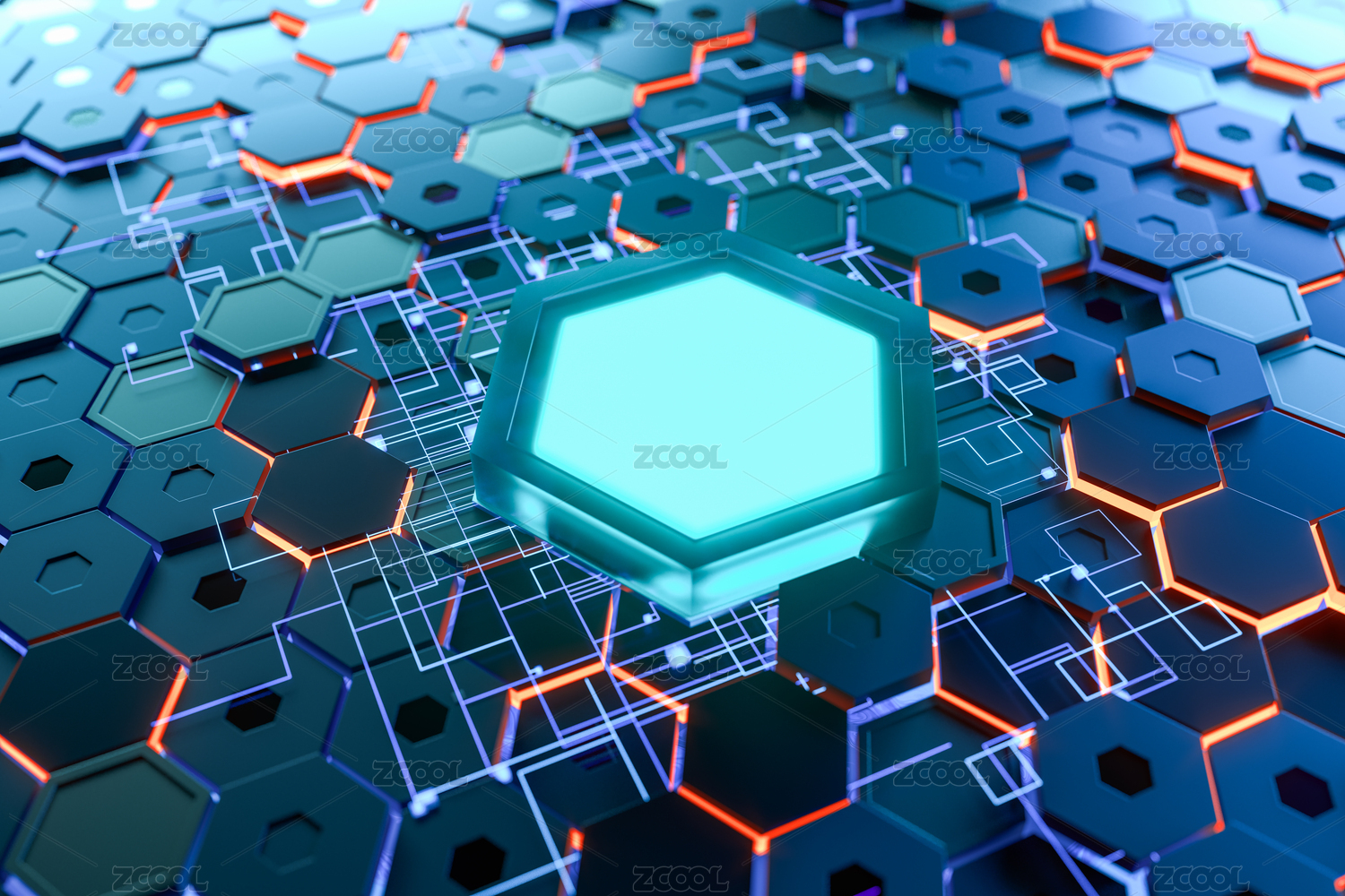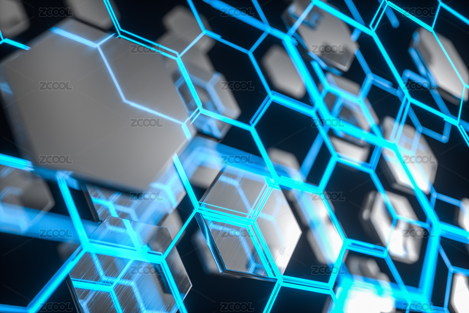 六边形科技感结构 3D渲染