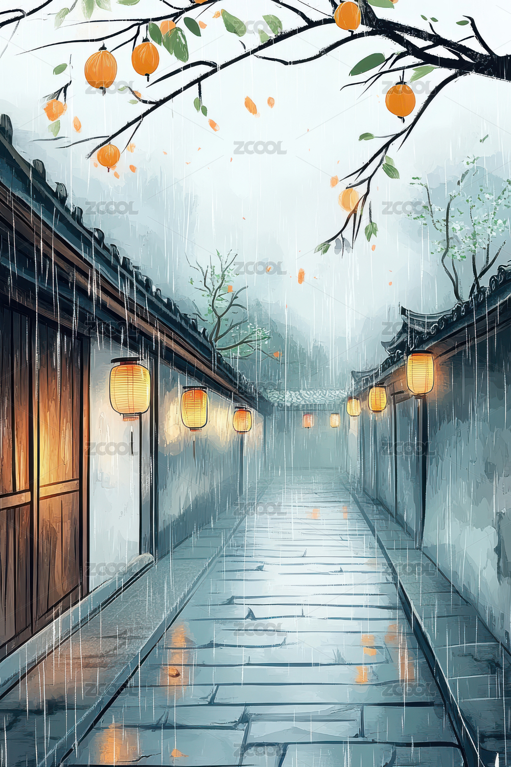 雨天的古风街道