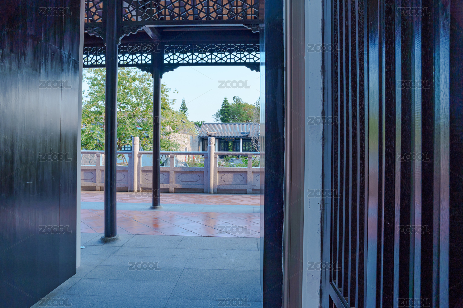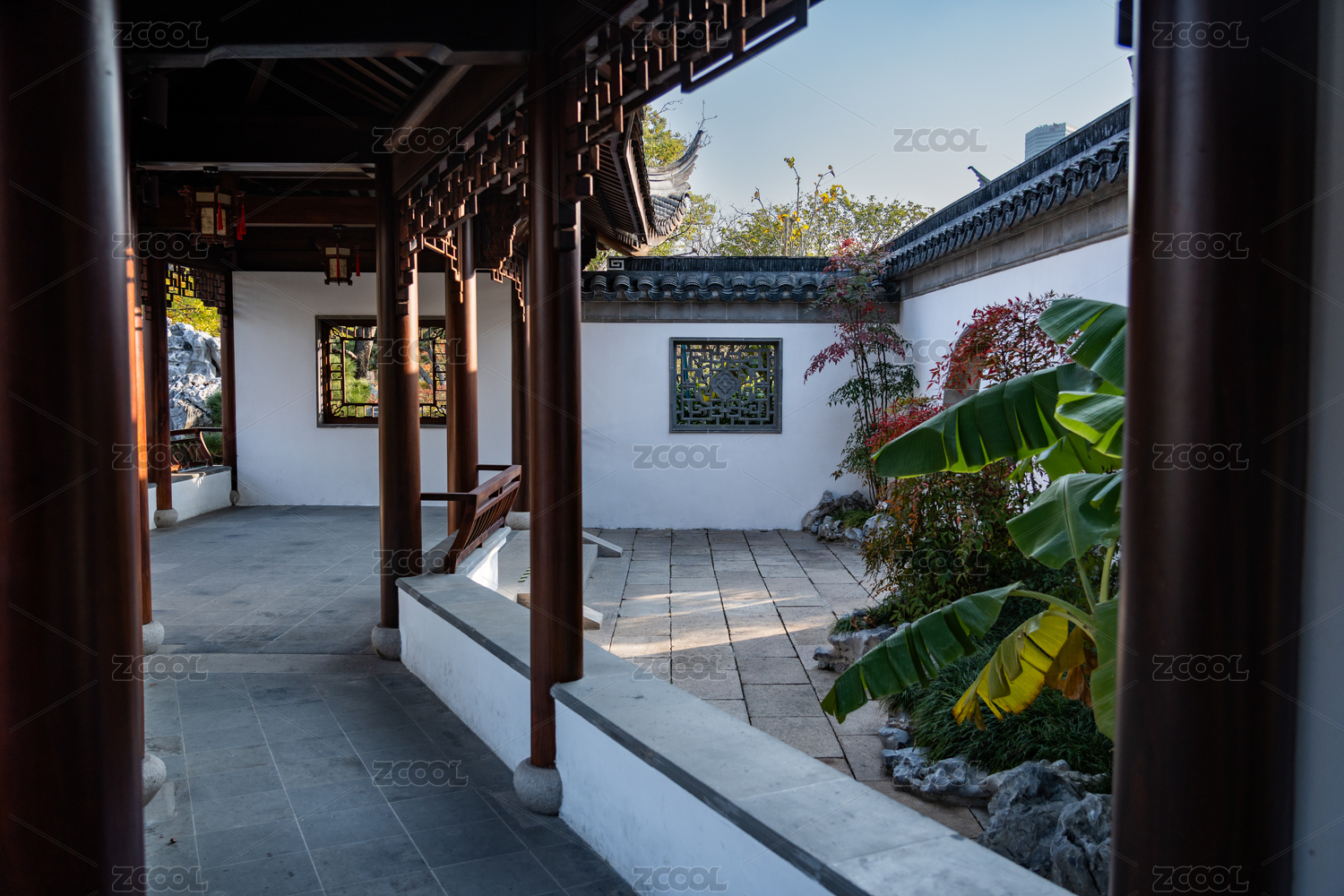 午后,苏州木渎古镇虹饮山房内的园林风景