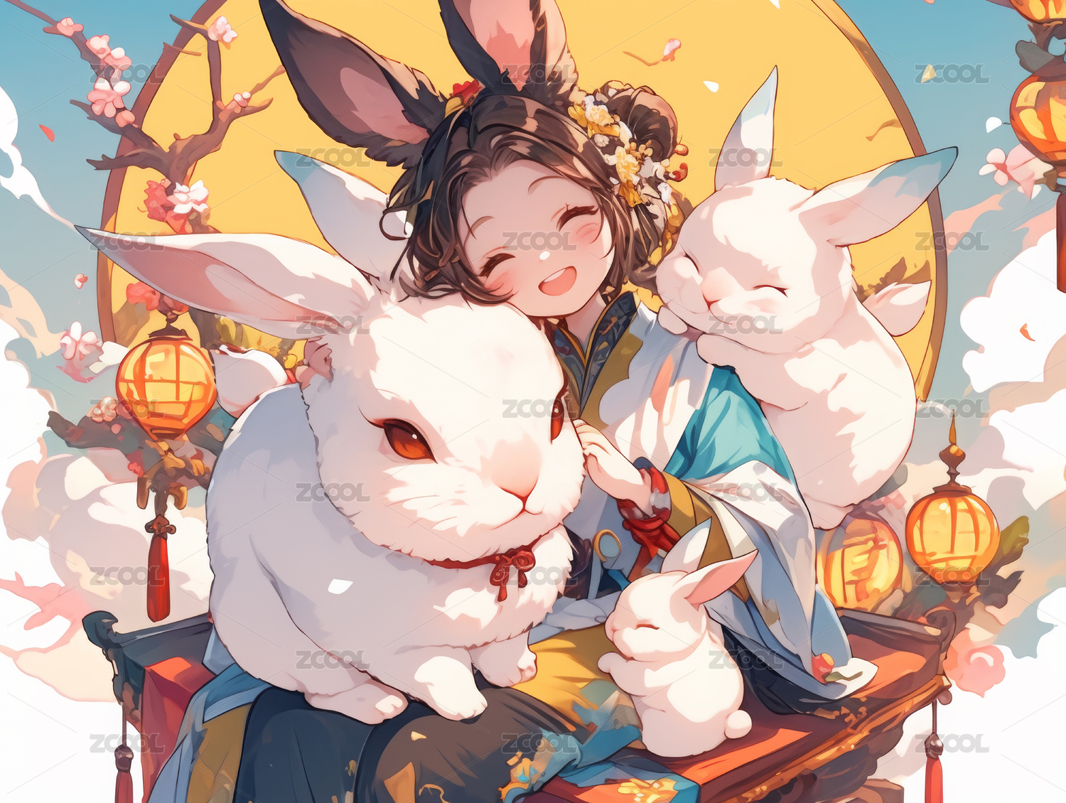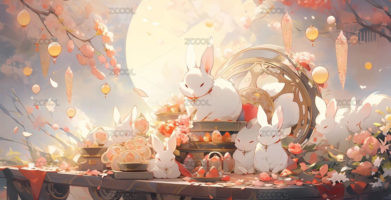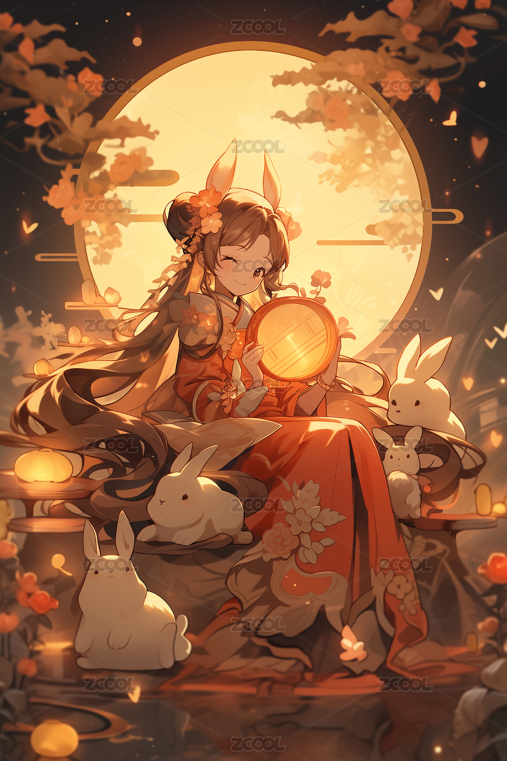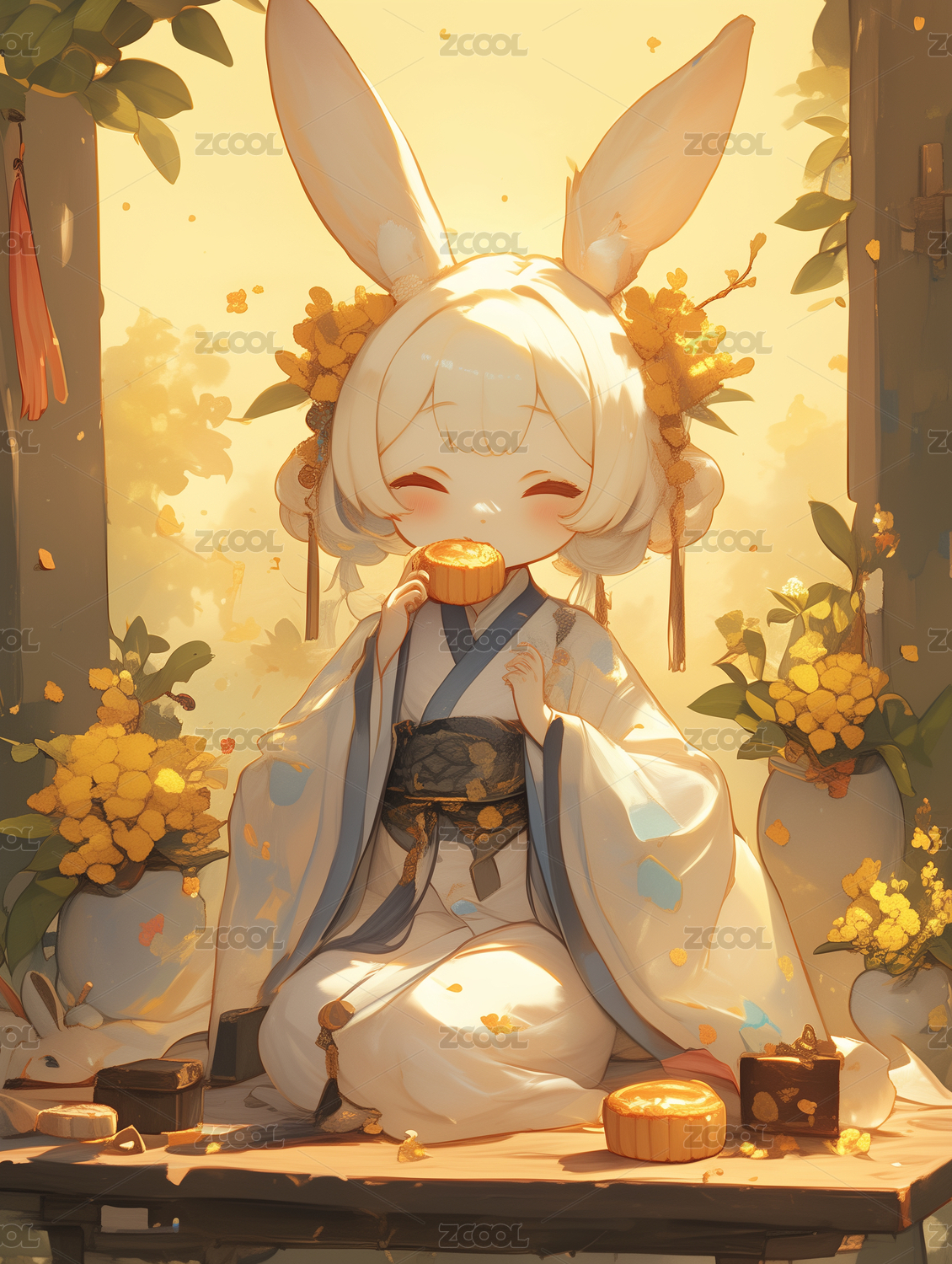 嫦娥,玉兔,可爱,月饼,国风,节日,中秋,背景,壁纸,AIGC202403