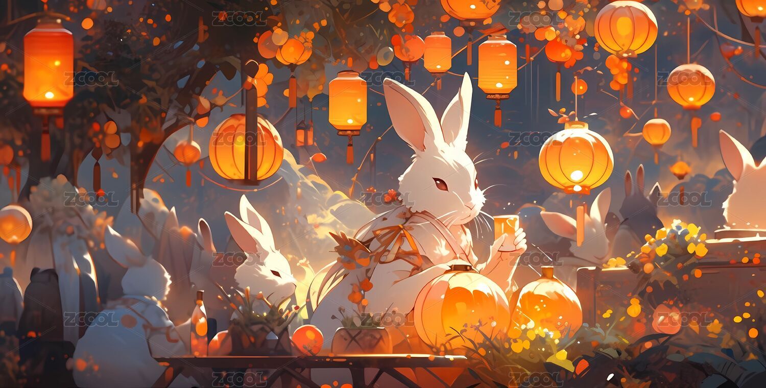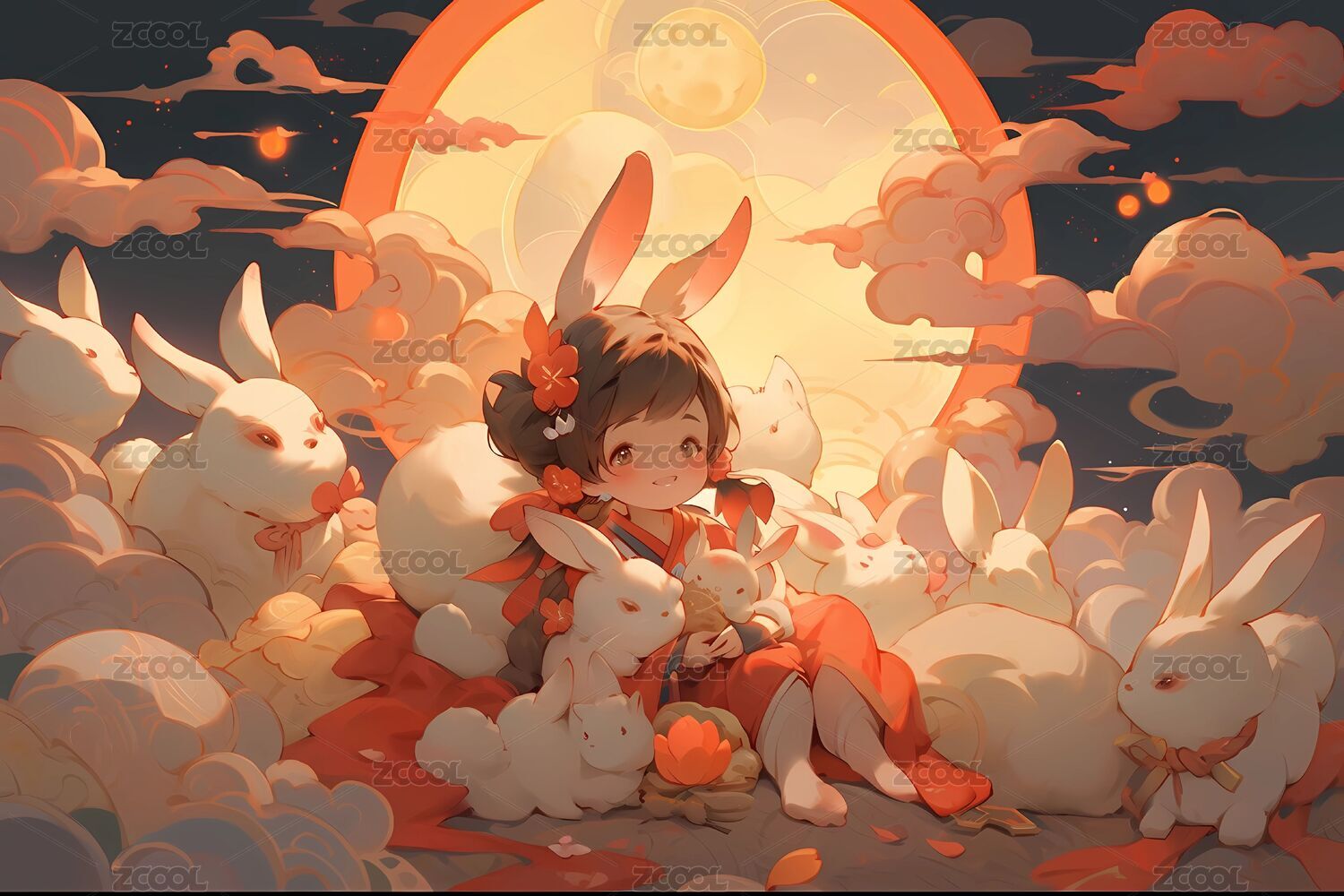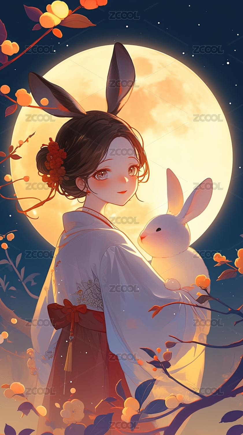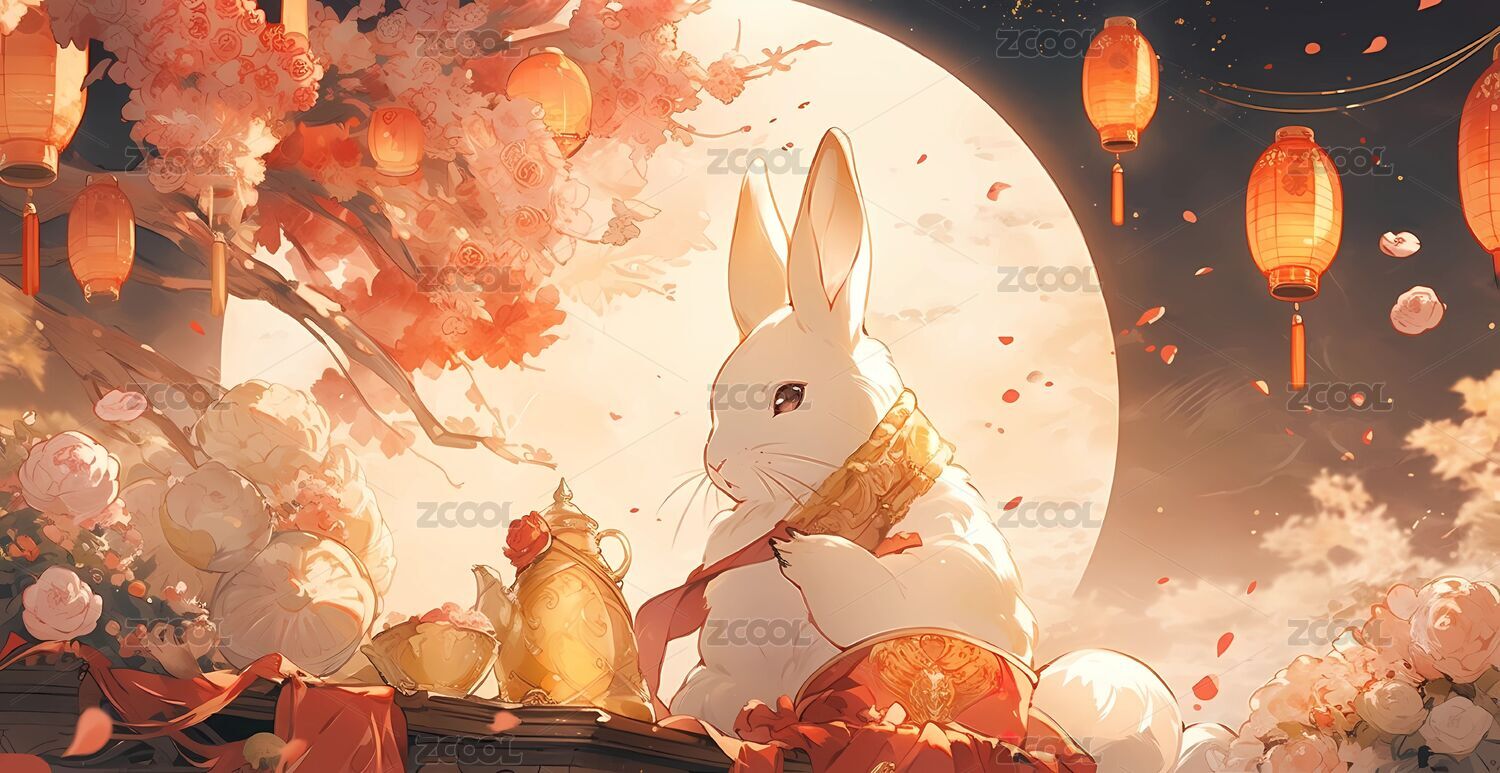 嫦娥,玉兔,可爱,月饼,国风,节日,中秋,背景,壁纸,AIGC202403