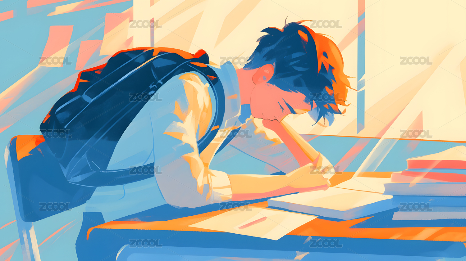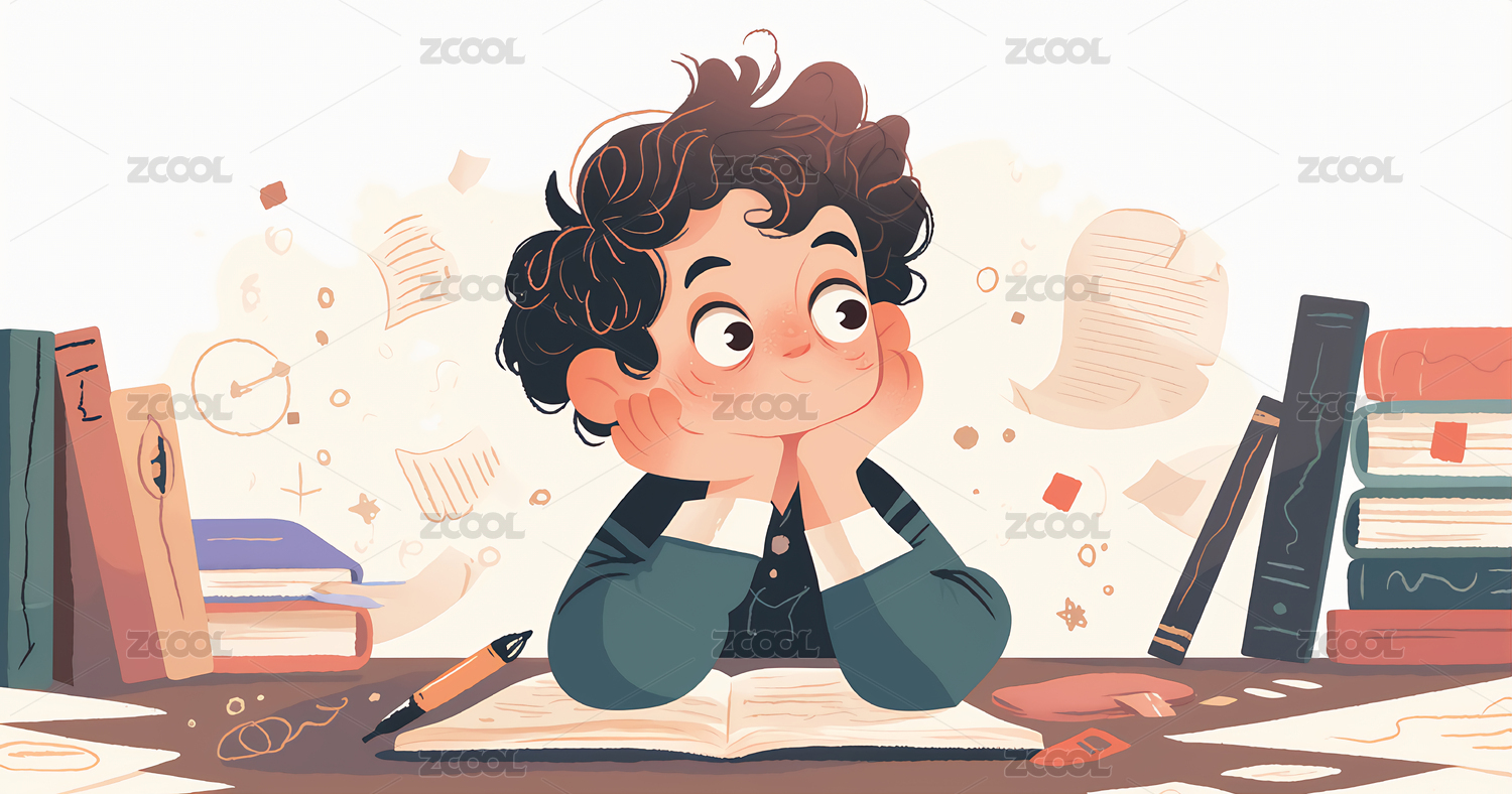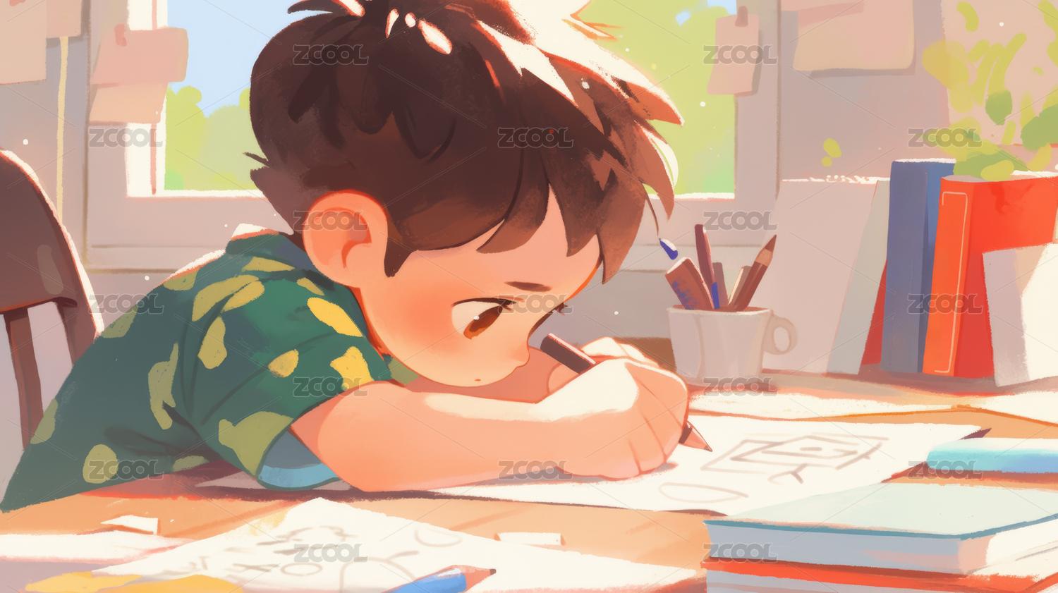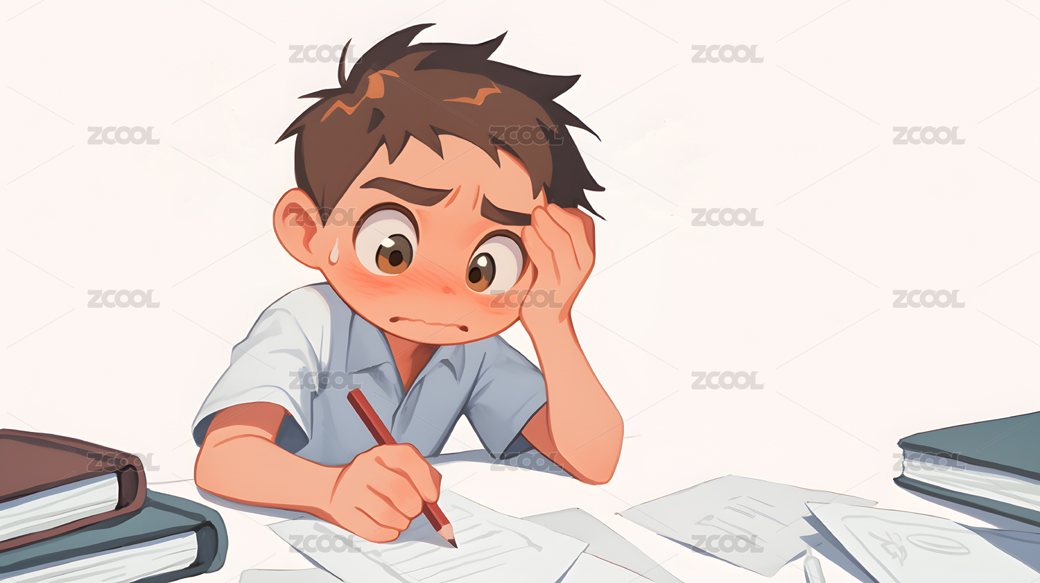 小男孩,小学生,写作业,焦虑,学习,AIGC202402,书本
