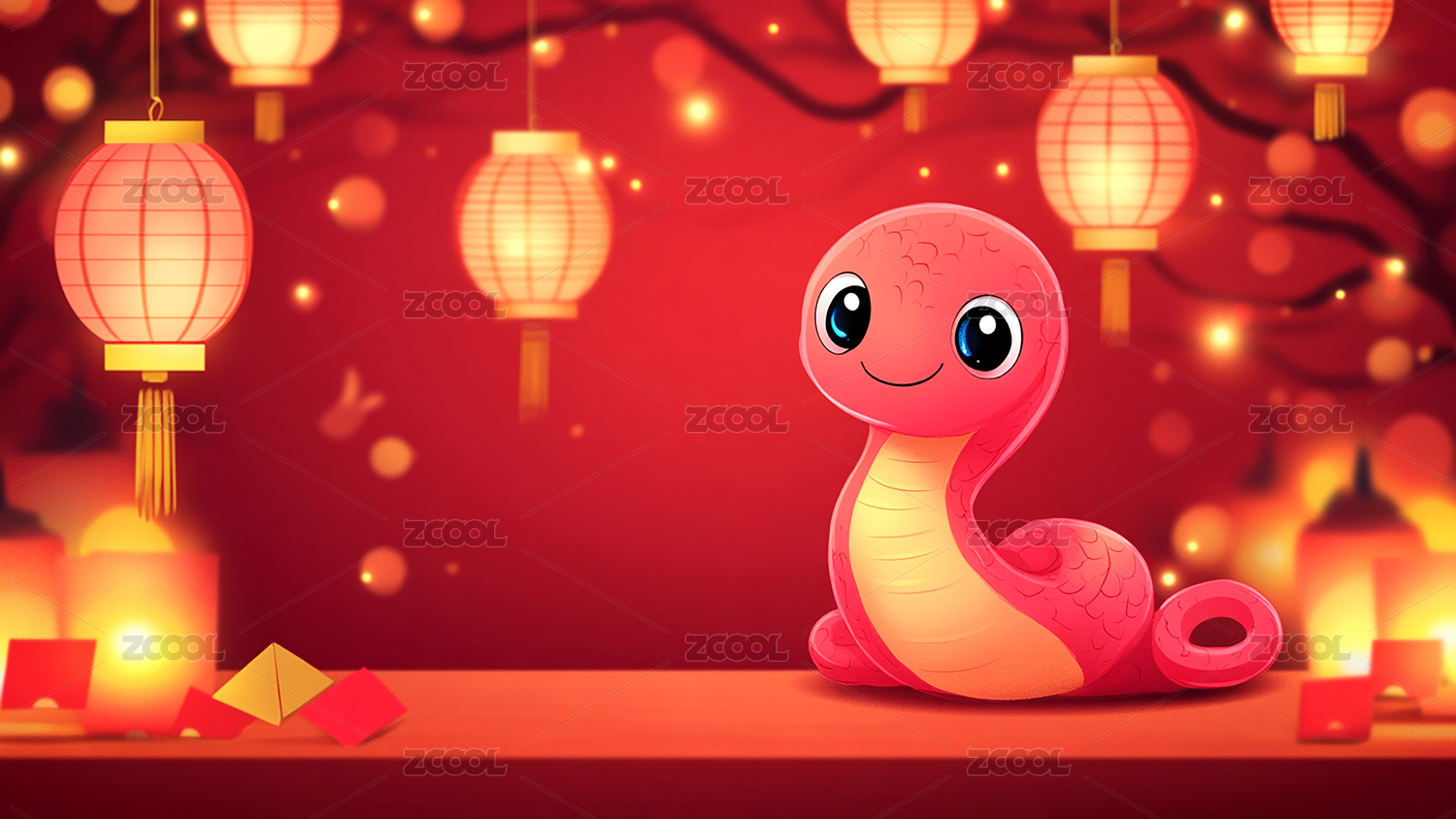 红蛇,蛇,灯笼,中国风,新年,春节,喜庆,祥瑞,卡通,可爱