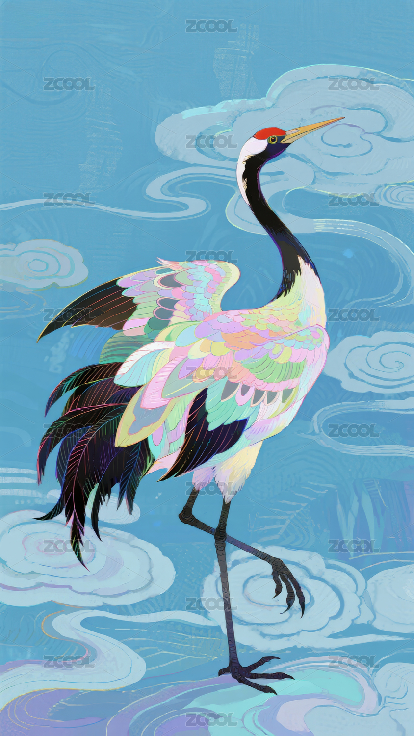国潮风仙鹤祥云图