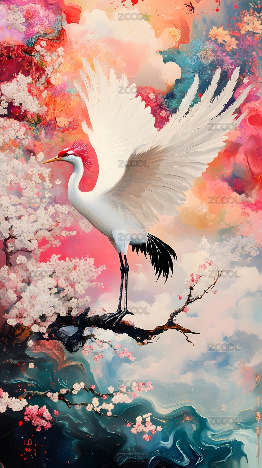 丹顶鹤,白鹤,仙鹤,祥瑞,吉祥,中国风,东方文化,传统文化,水墨画,国画