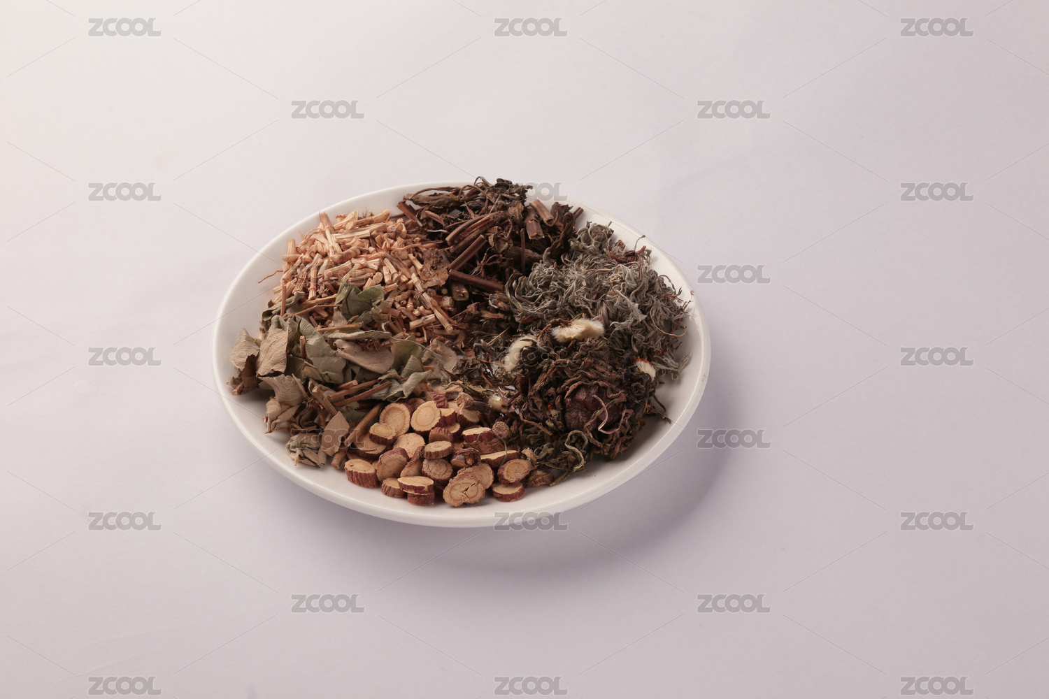 一剂治疗感冒咳嗽的中草药材和一碗煎好的中草药汤