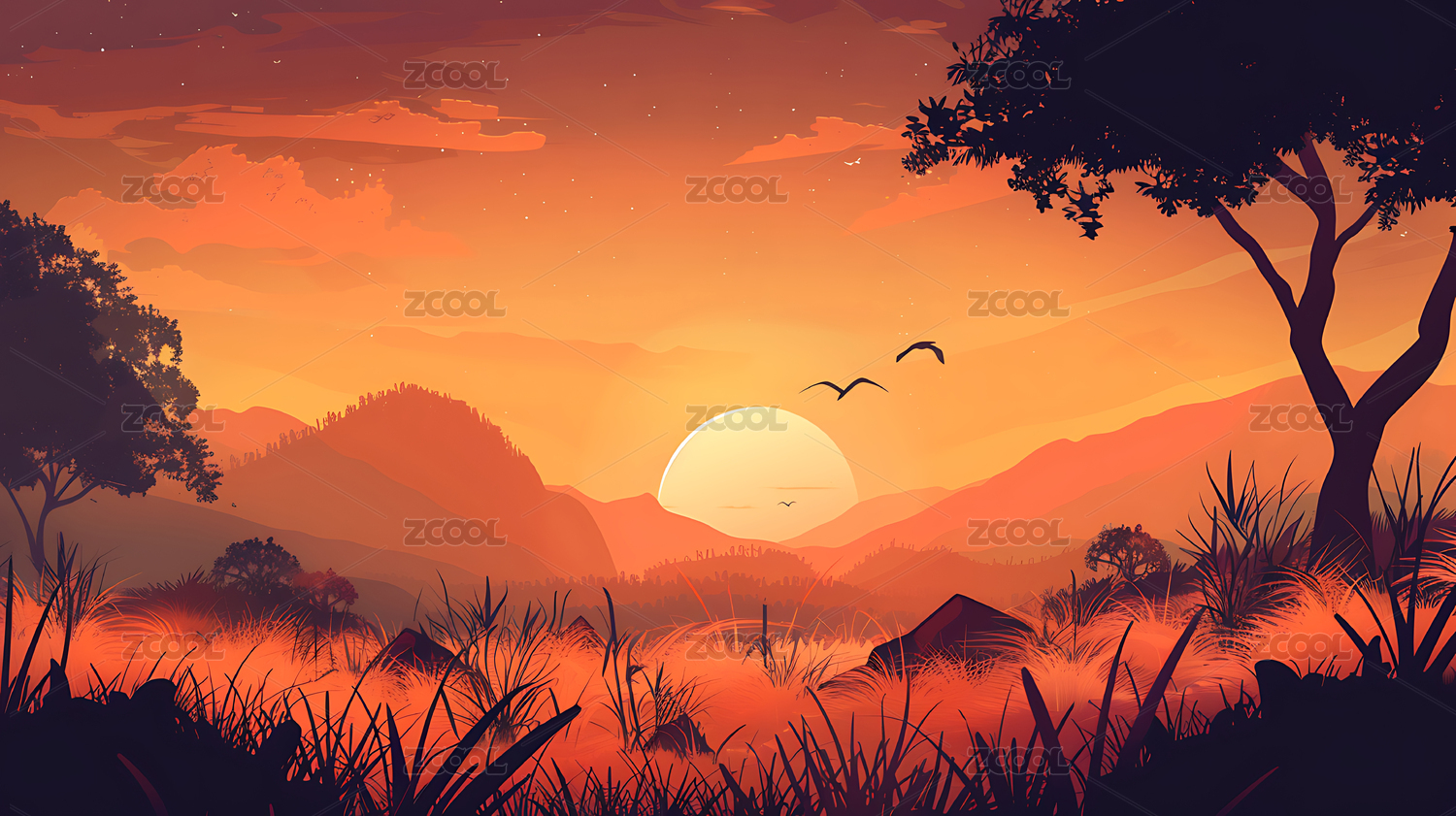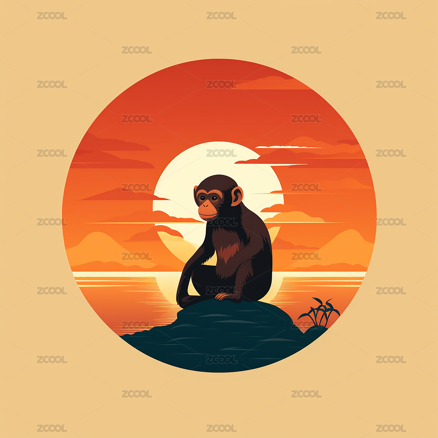黄昏,日落,动物,宠物,彩霞,简笔画,生肖,猴年,猴,猴子