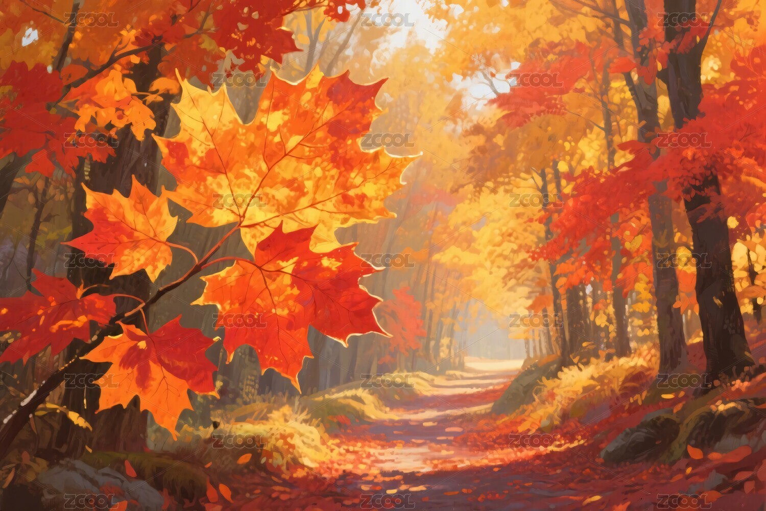 秋季森林小径插画