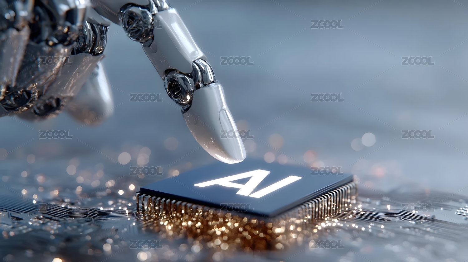 黄色台灯和黄色灯泡照射出的光交织在AI字