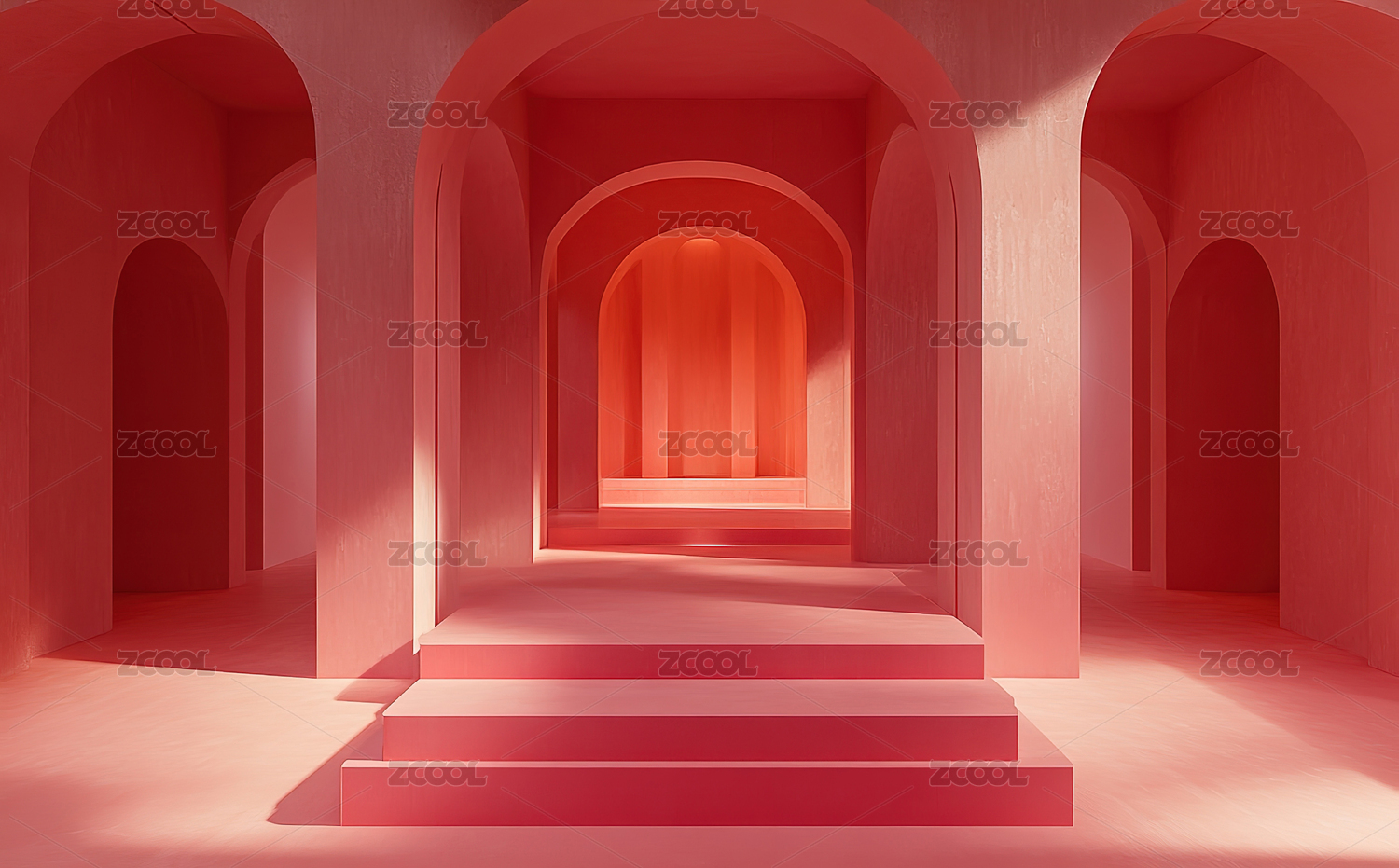 红色背景下的走廊通道