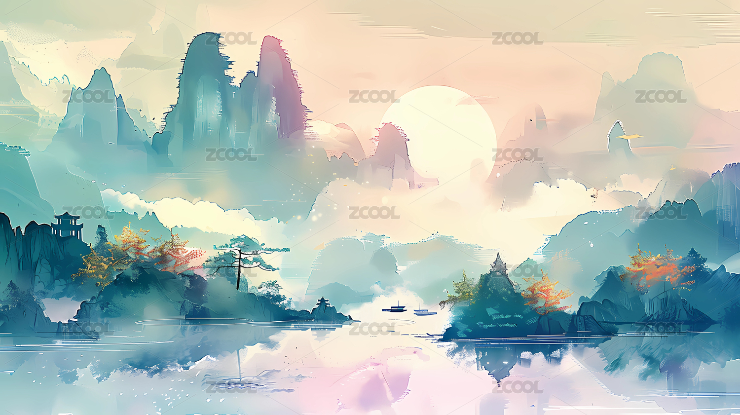 无人,高山,天空,地形,背景,云,插画,户外,日落,宁静