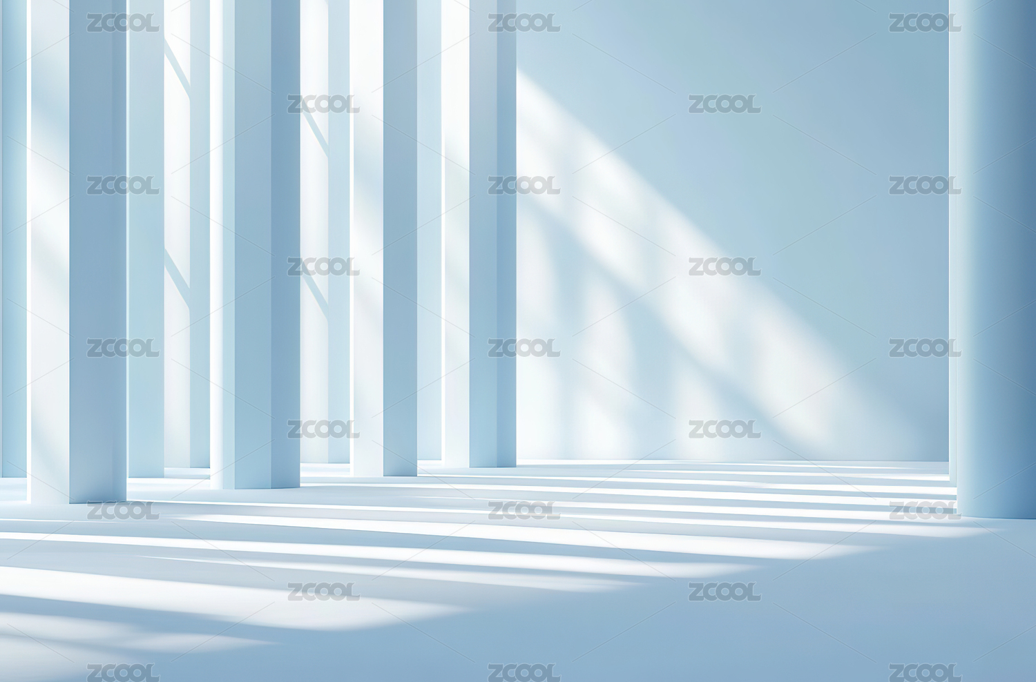 阳光透过柱子洒在地面上