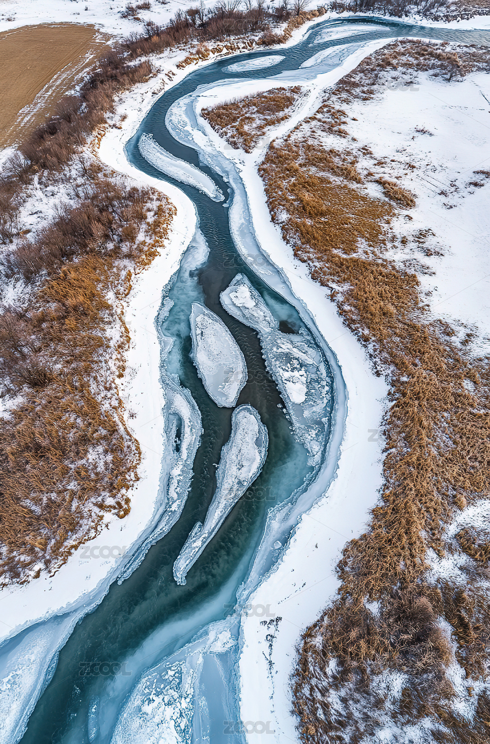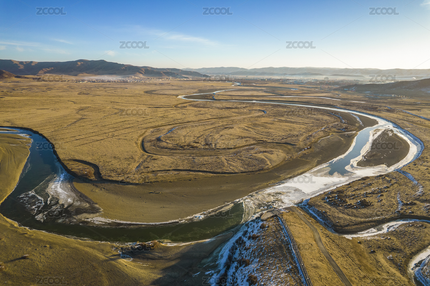 中国四川阿坝藏族羌族自治州红原冬季航拍图