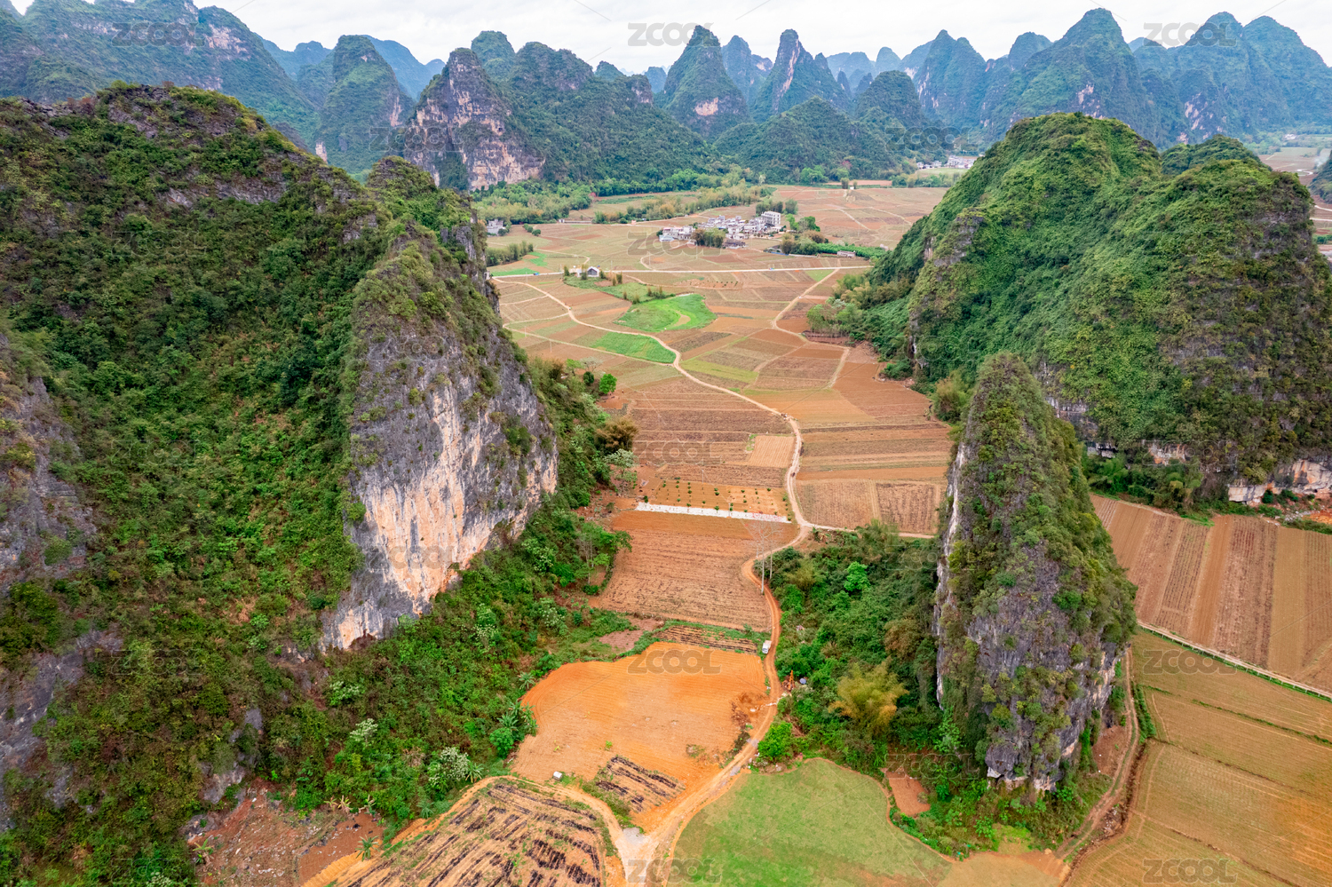 中国广西崇左市明仕田园喀斯特航拍视角风光