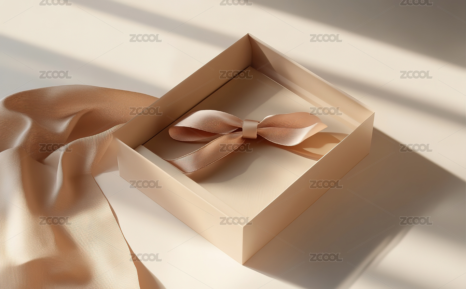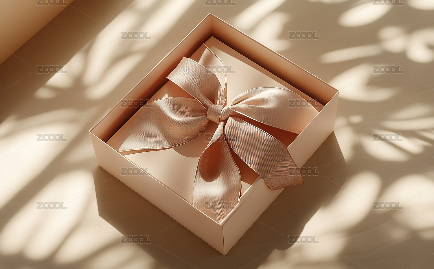 白色礼盒与丝带的静物布置