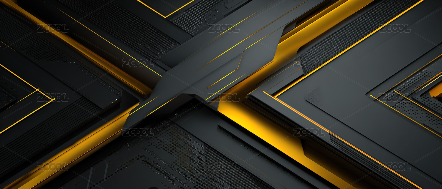 黑金现代几何建筑空间平台3D渲染抽象背景
