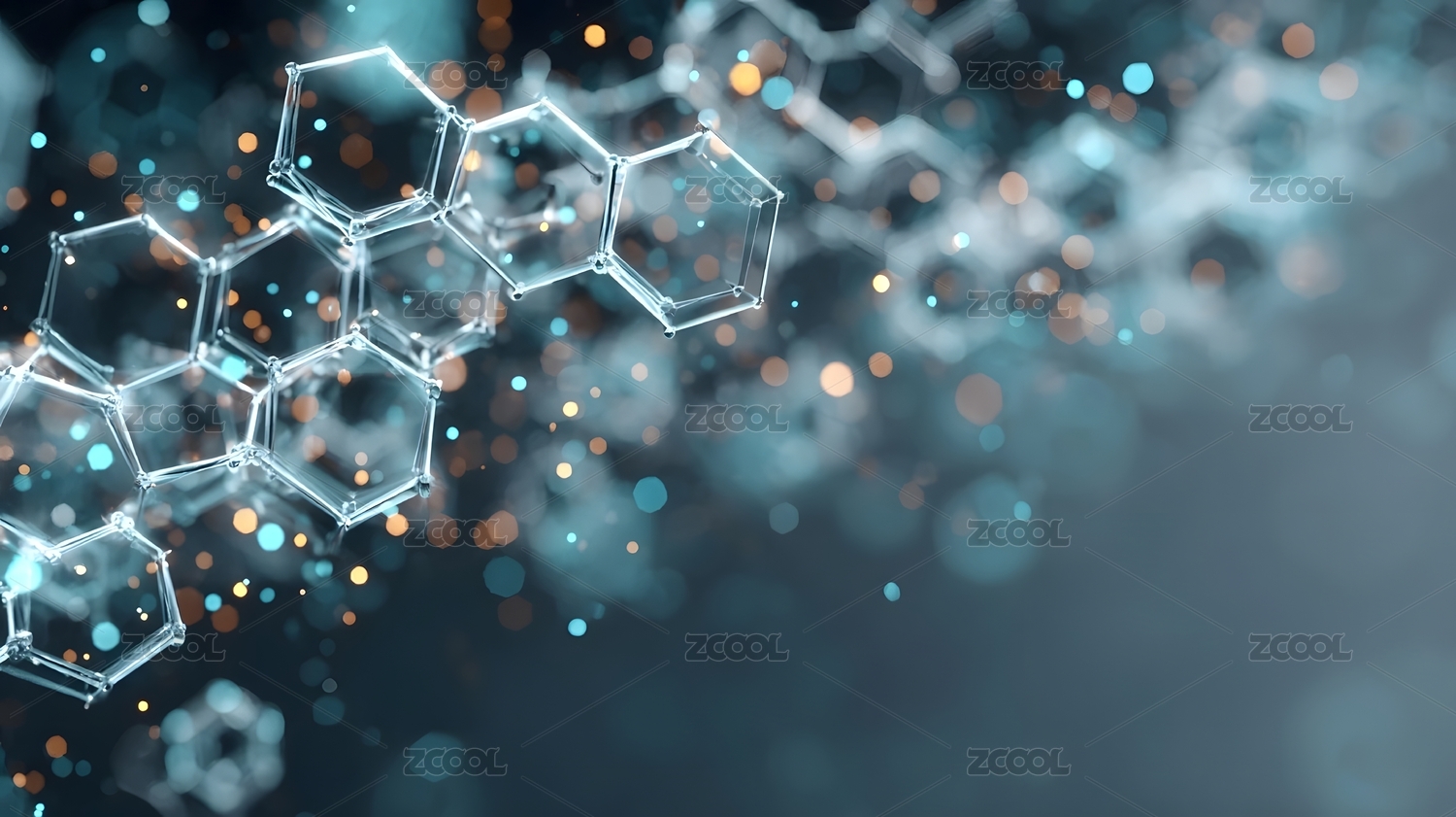 抽象的背景与霓虹色彩的未来分子和化学结构