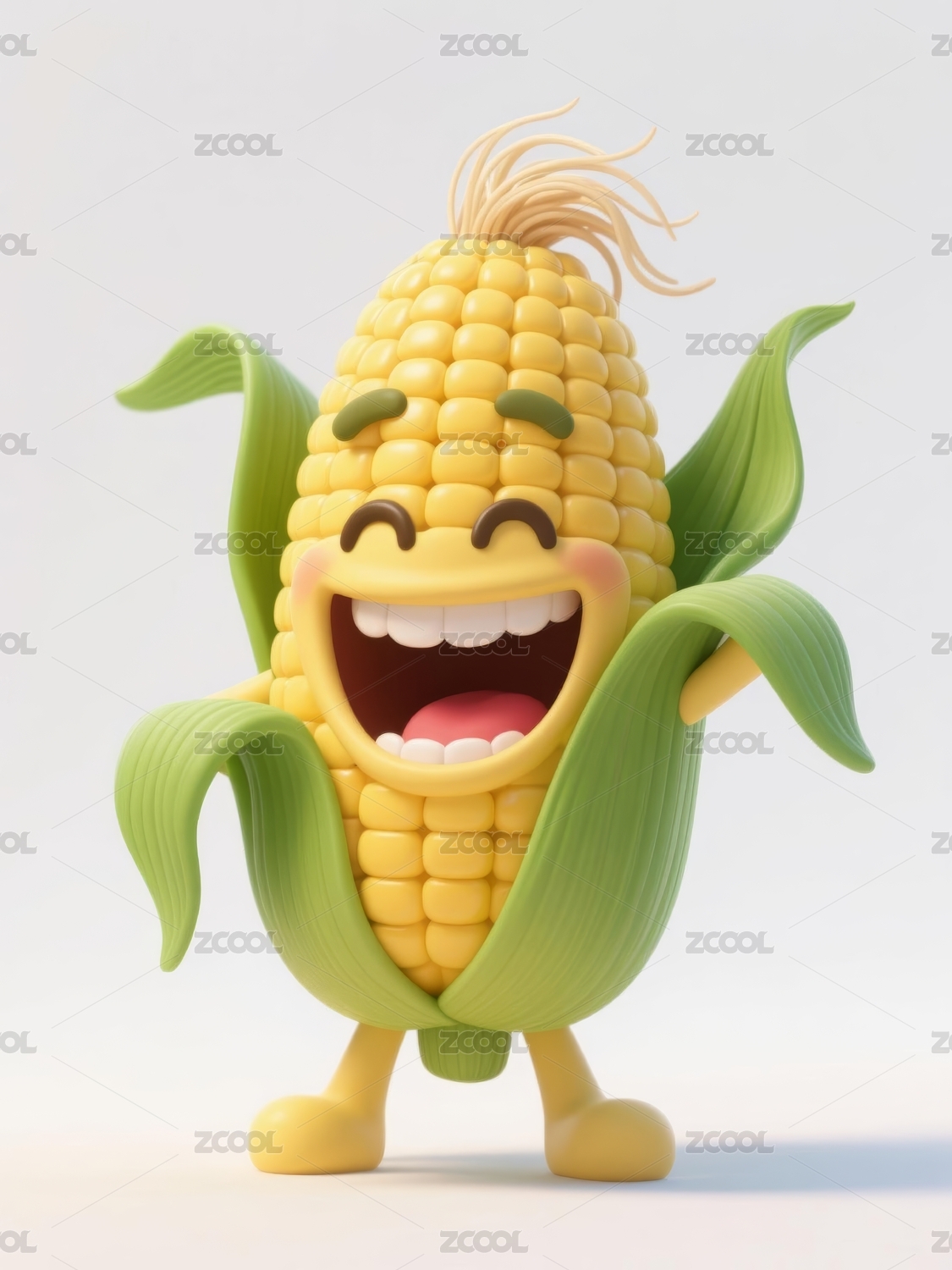 玉米,拟人,蔬菜,开心,表情,大笑,笑容,爆米花,形象,3d