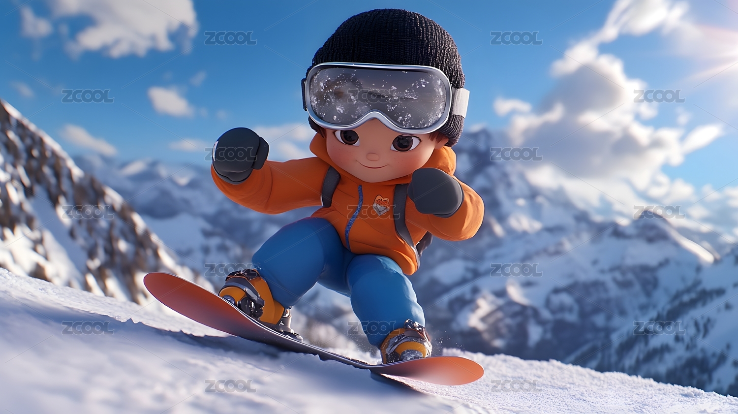 背景,设计,图形,蓝色,山,白色,滑雪,卡通,雪,运动