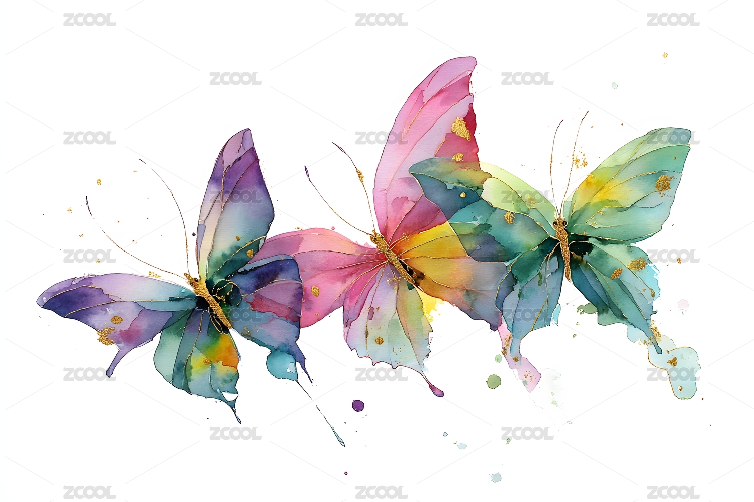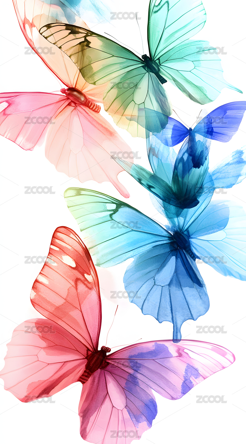 水彩绘就的多彩蝴蝶翩翩飞舞