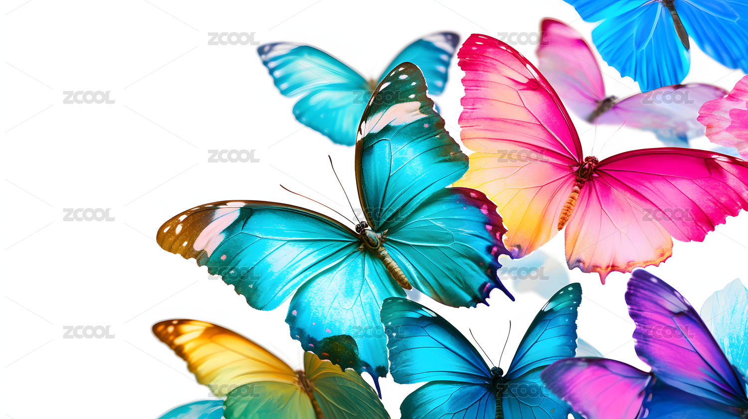 炫彩蝴蝶艺术设计白底图