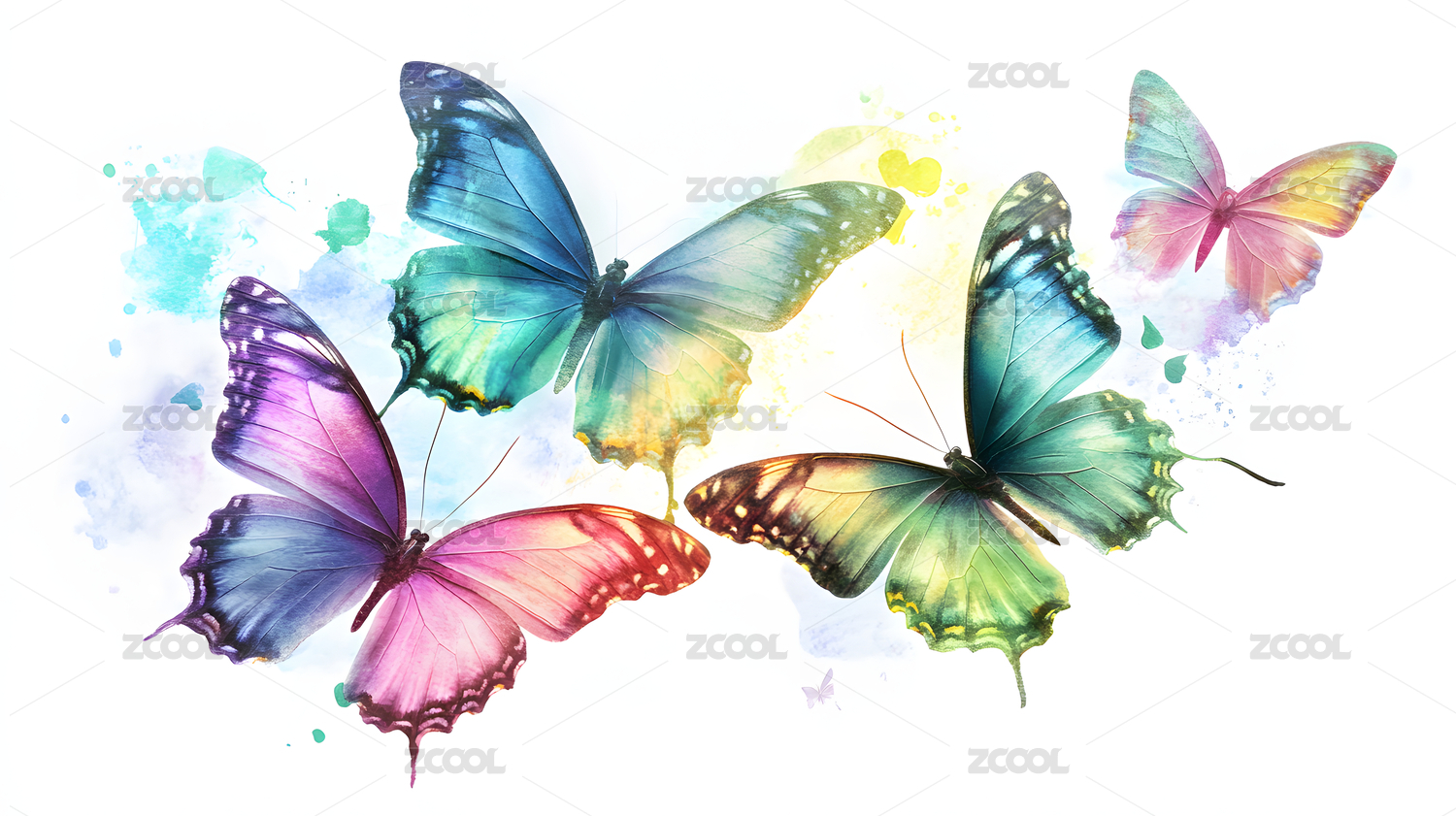 梦幻水彩蝴蝶白底图