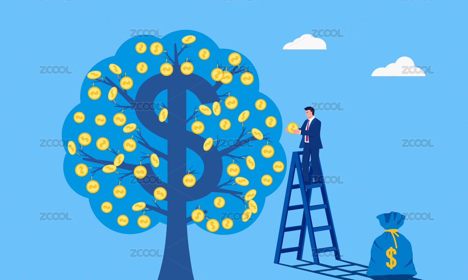水浇金钱树——经济增长、货币增长、投资理财、利润、财务管理概念创意矢量图