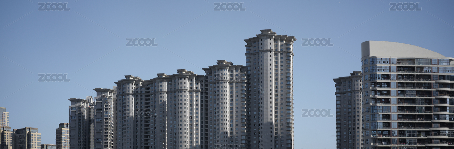 高层西式风格居民楼,楼顶部分有灯光沿墙壁照下
