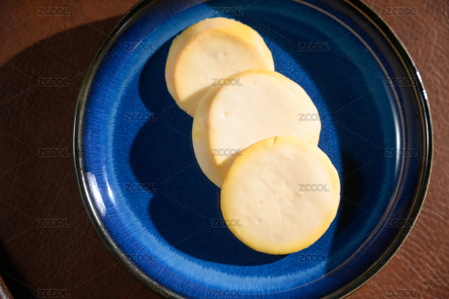 桌面上的盘子里的美味可口的白巧克力橙子片