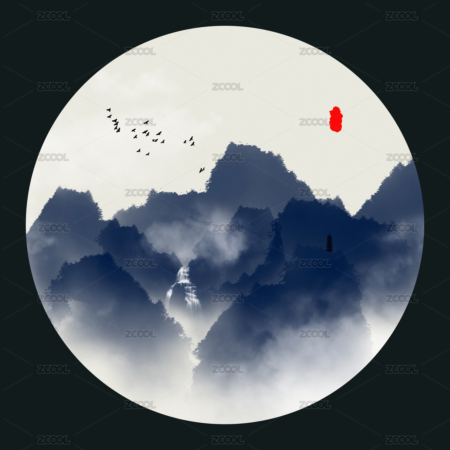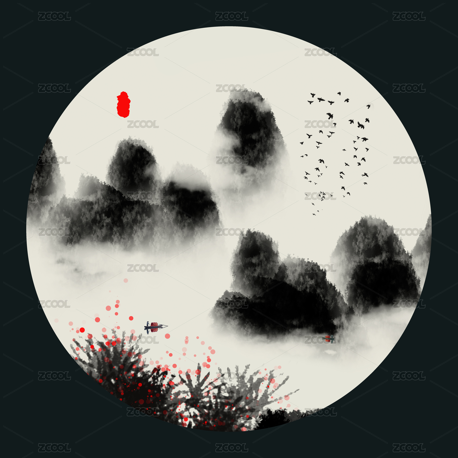 中国风,山水画,新中式,中式,水墨,国潮,自然,国画,淡雅,禅意