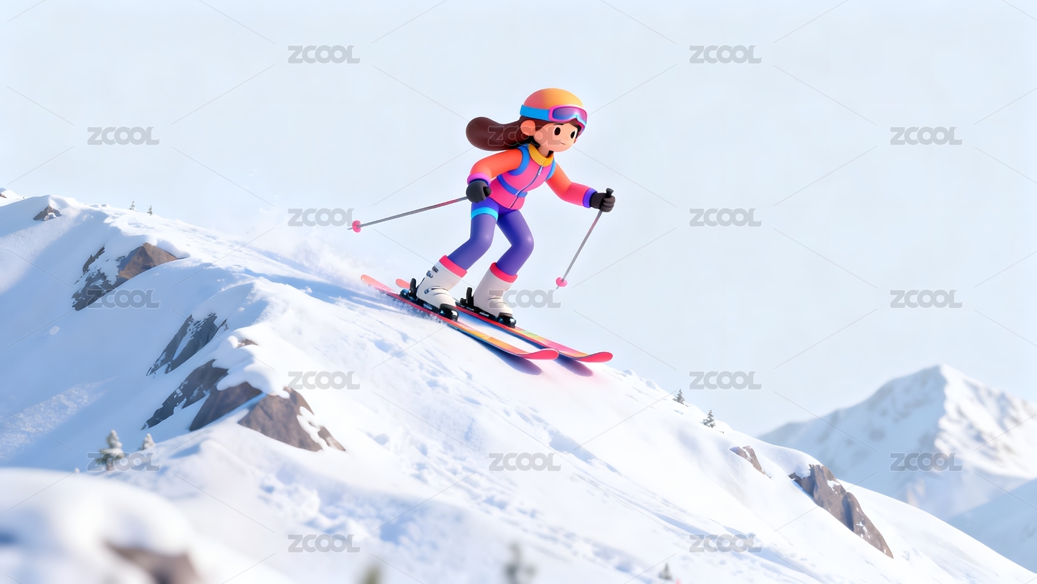 3d,卡通,体育,运动,人物,比赛,AIGC202401,跑步,女,滑雪