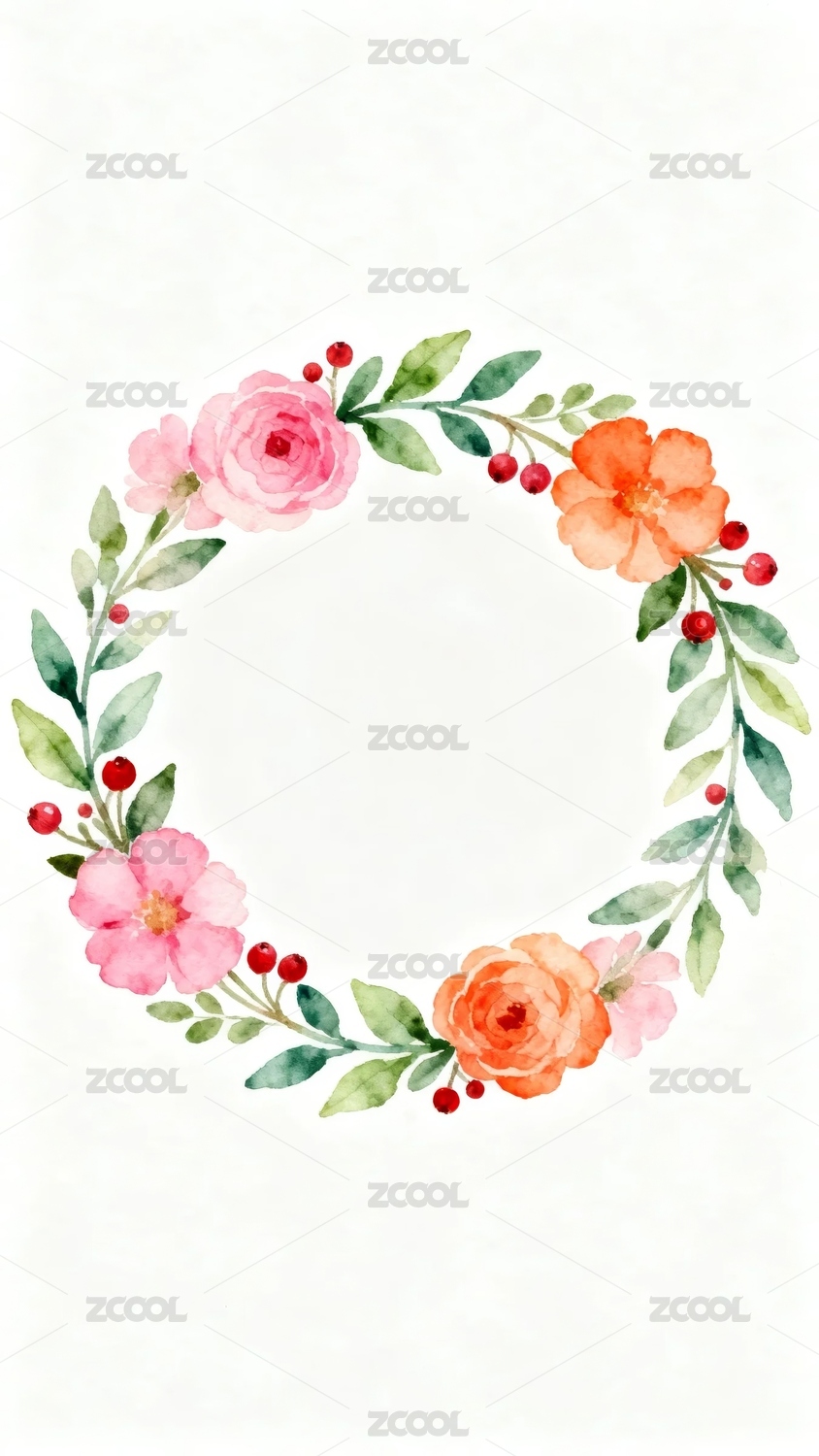 水彩花卉花环设计