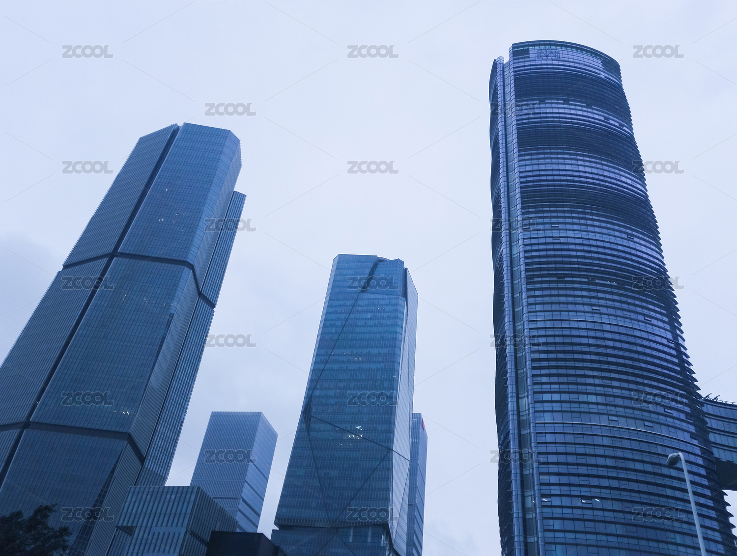 低角度拍摄的高纵入云的商业写字楼
