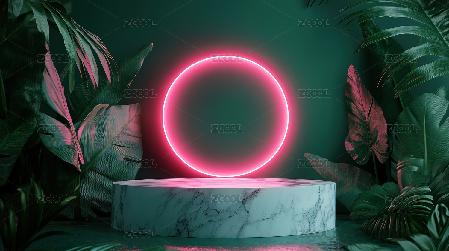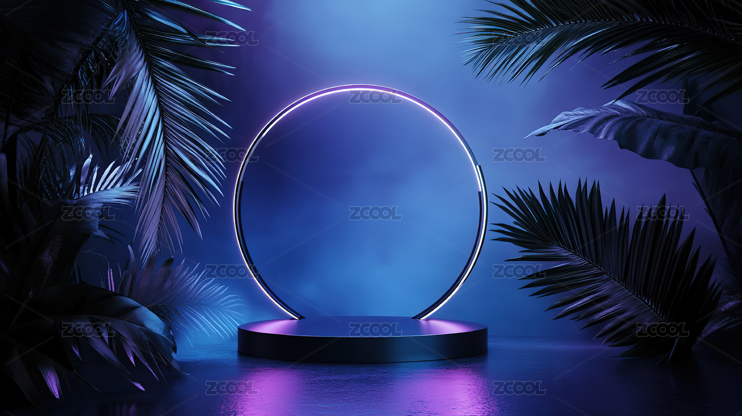蓝色,灯光,照射,植物,展台,平台,几何,场景,展示