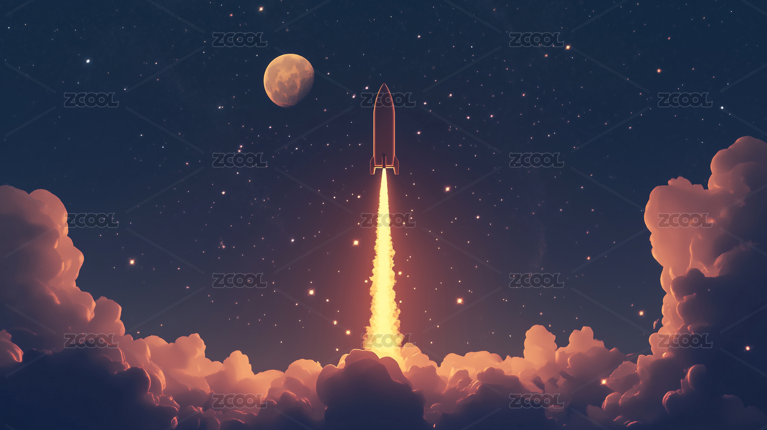 卡通,发射,火箭,插画,宇宙,星球,探索,梦幻