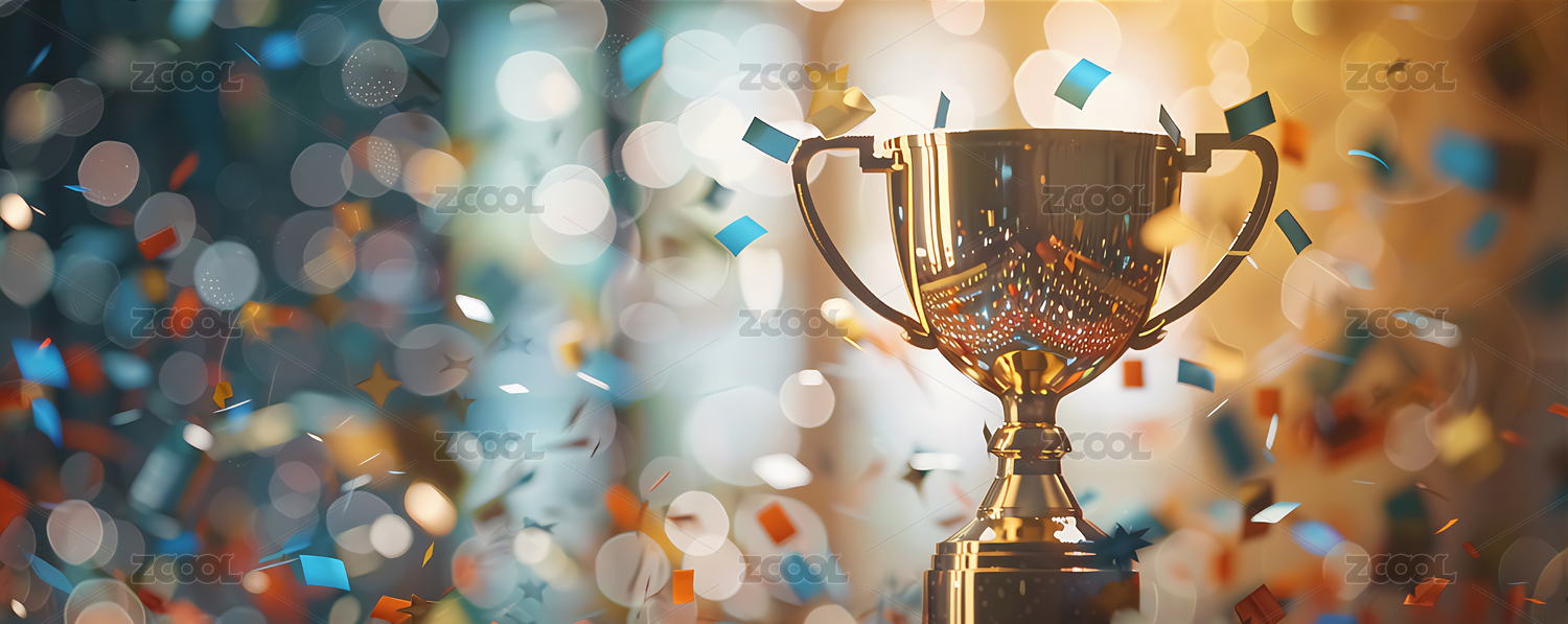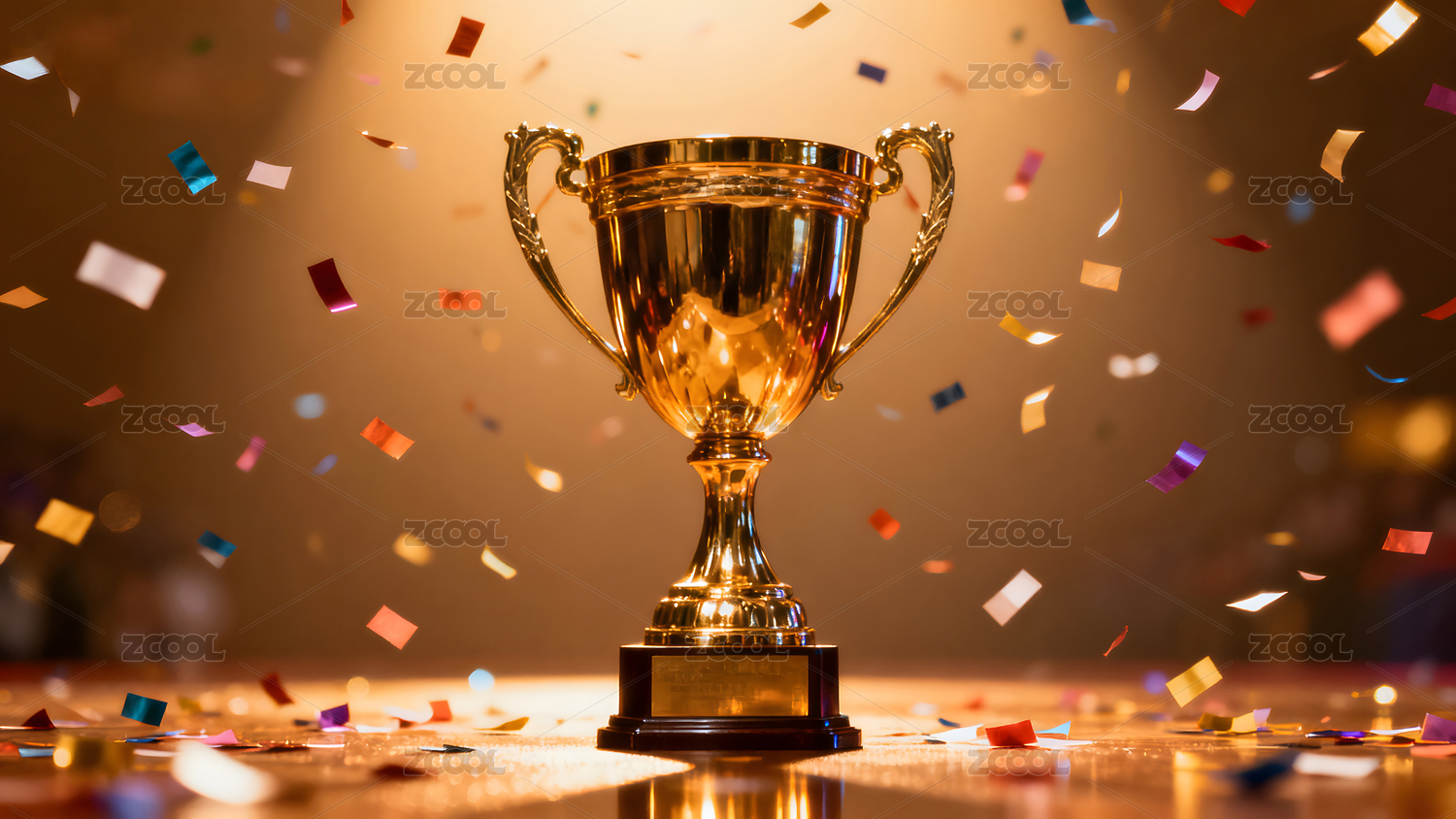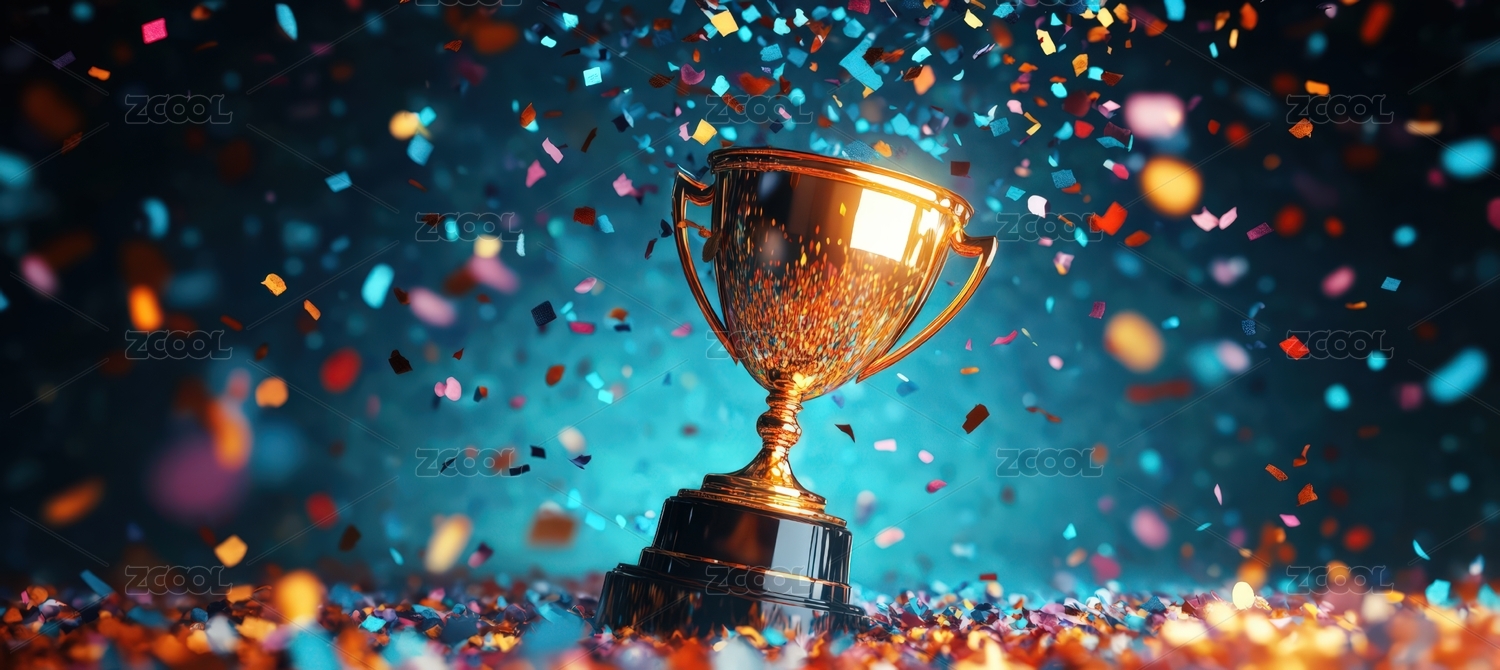 金色,奖杯,荣誉,奖励,金杯,金属,光泽,光芒,彩色,纸屑
