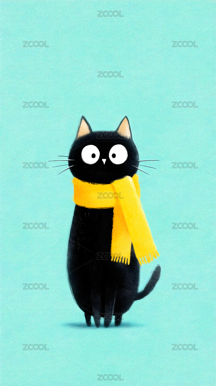 卡通手绘线条感极简风小猫微笑表情壁纸插画