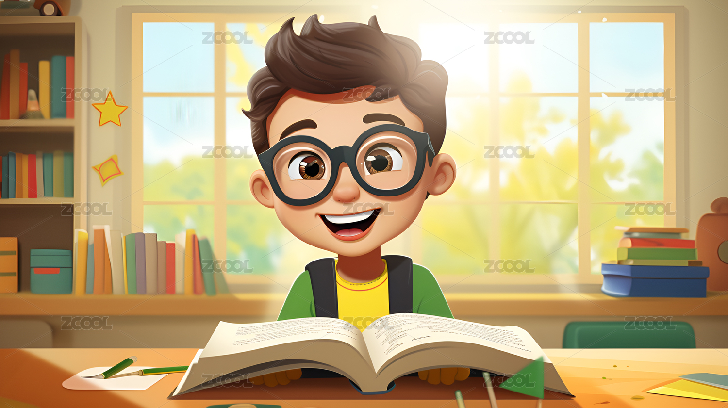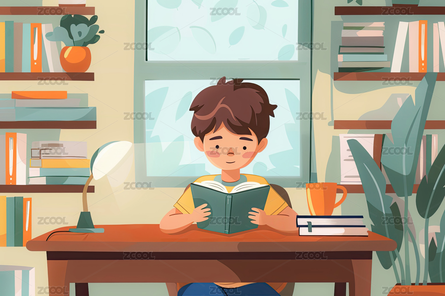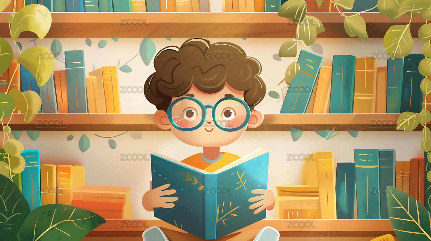 卡通手绘读书学习学习教育插画
