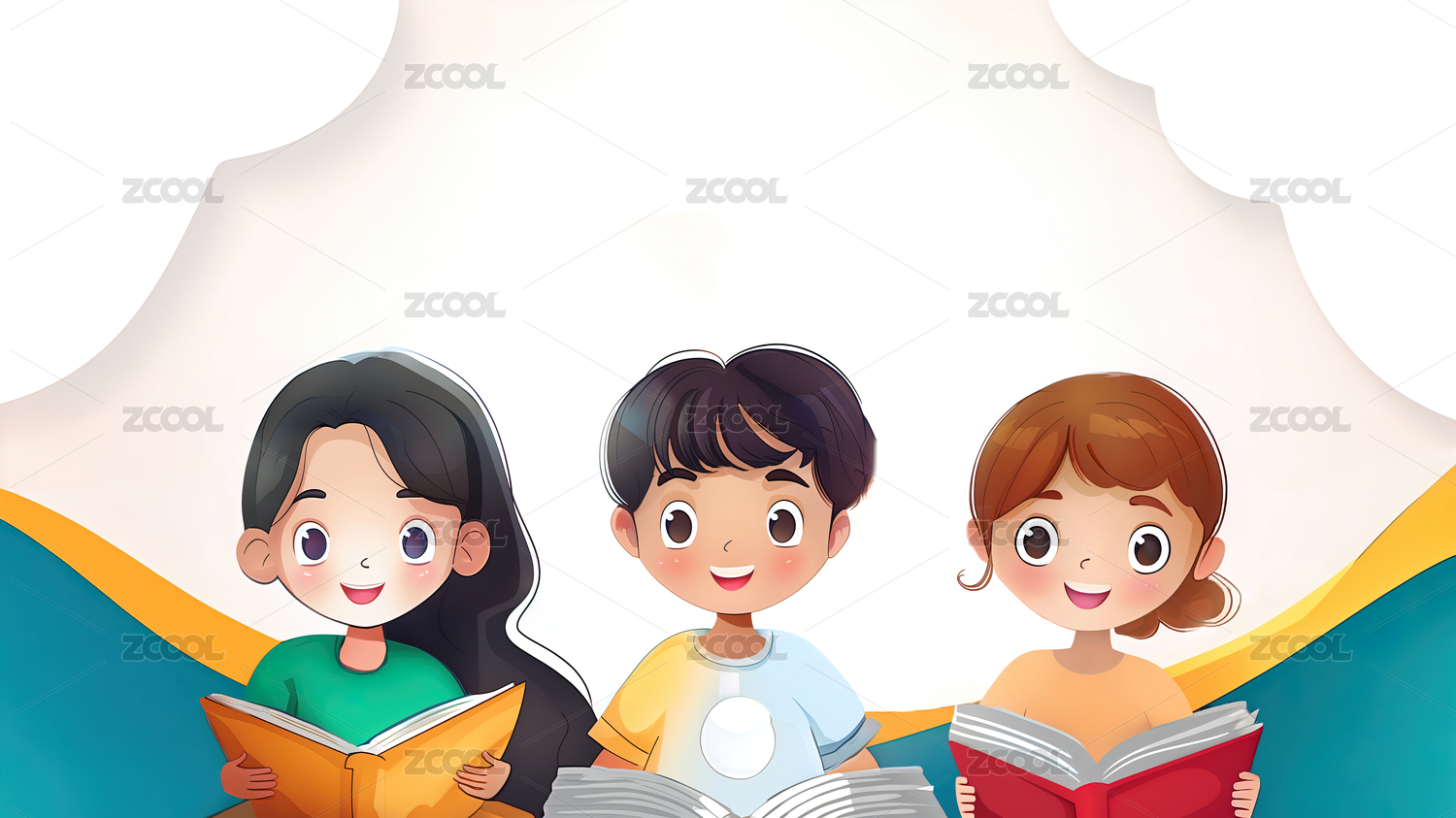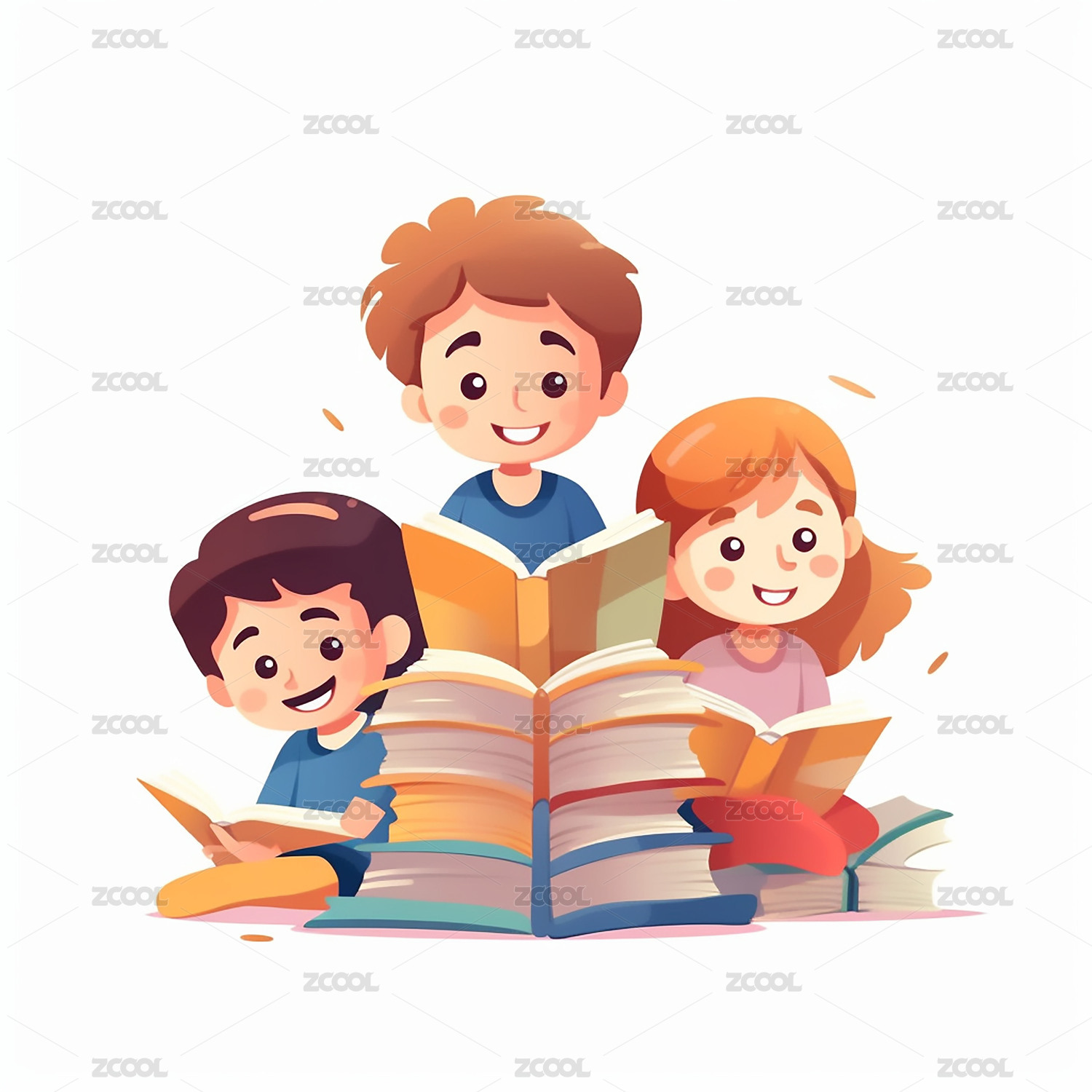 读书日,看书,书本,书,读书,卡通,插画,孩子,人,学生