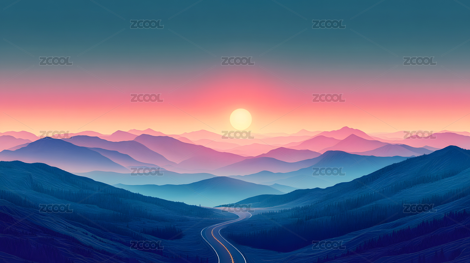 山峦公路夕阳图